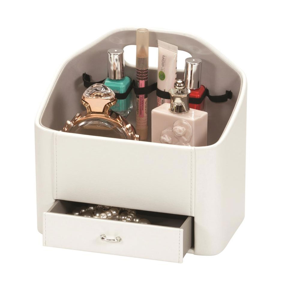 White leatherette cosmetic holder