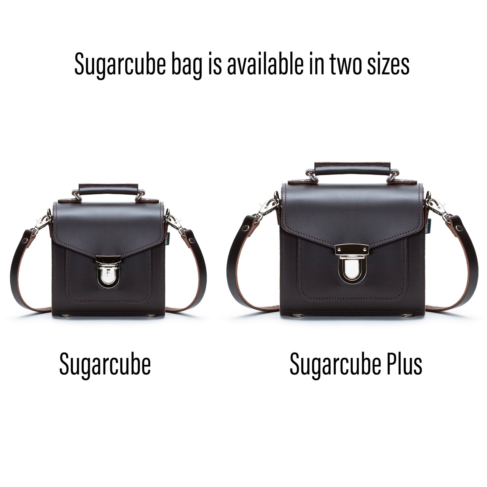 This classic leather sugarcube bag is carefully handmade out of real leather in England. This cute collection of colourful sugarcube bags will fit any occasion and complement your look.