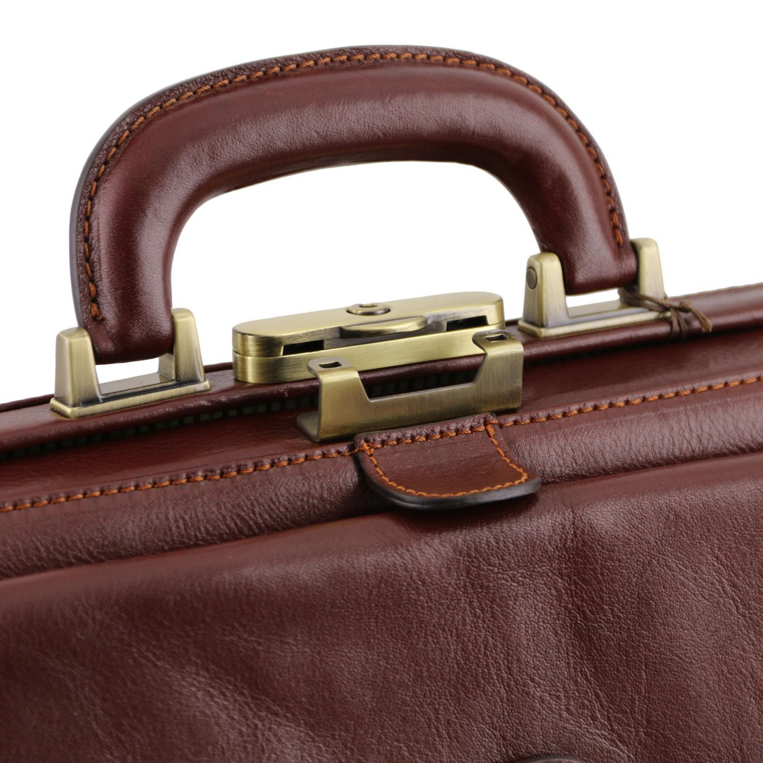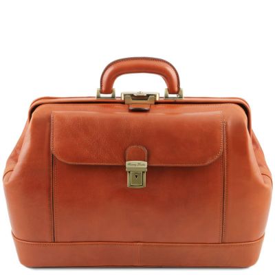 The Tuscany Leather Leonardo Drs Bag provides a spacious and interesting looking bag to the existing Leather Bags that are available at Bagswithclass. With a hand-buffed Full grained leather outer and the desirable Old American style opening, this stylish Leather Doctors Bag will make the ideal travel companion for the user who requires a bag that is a little bit different to the more mainstream designed bags available.