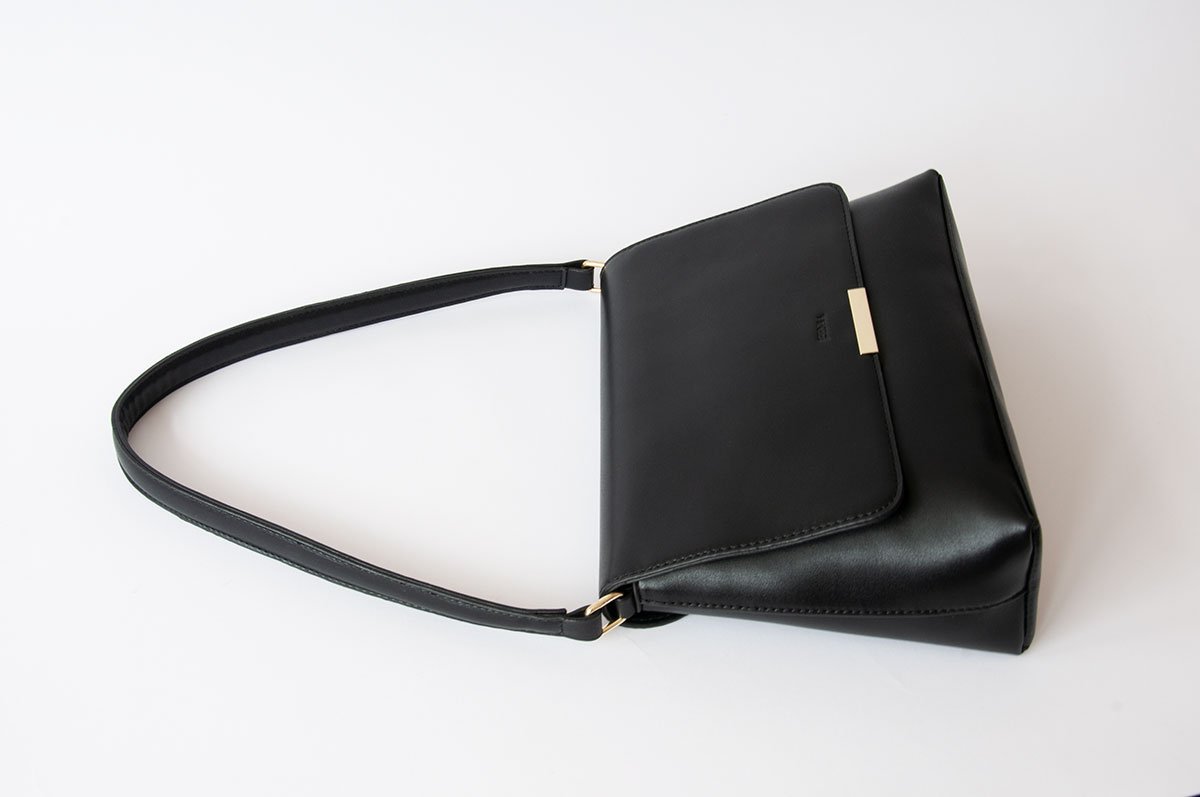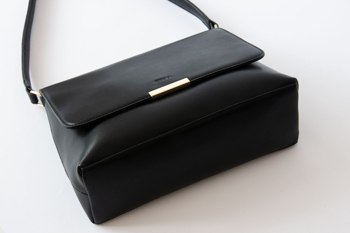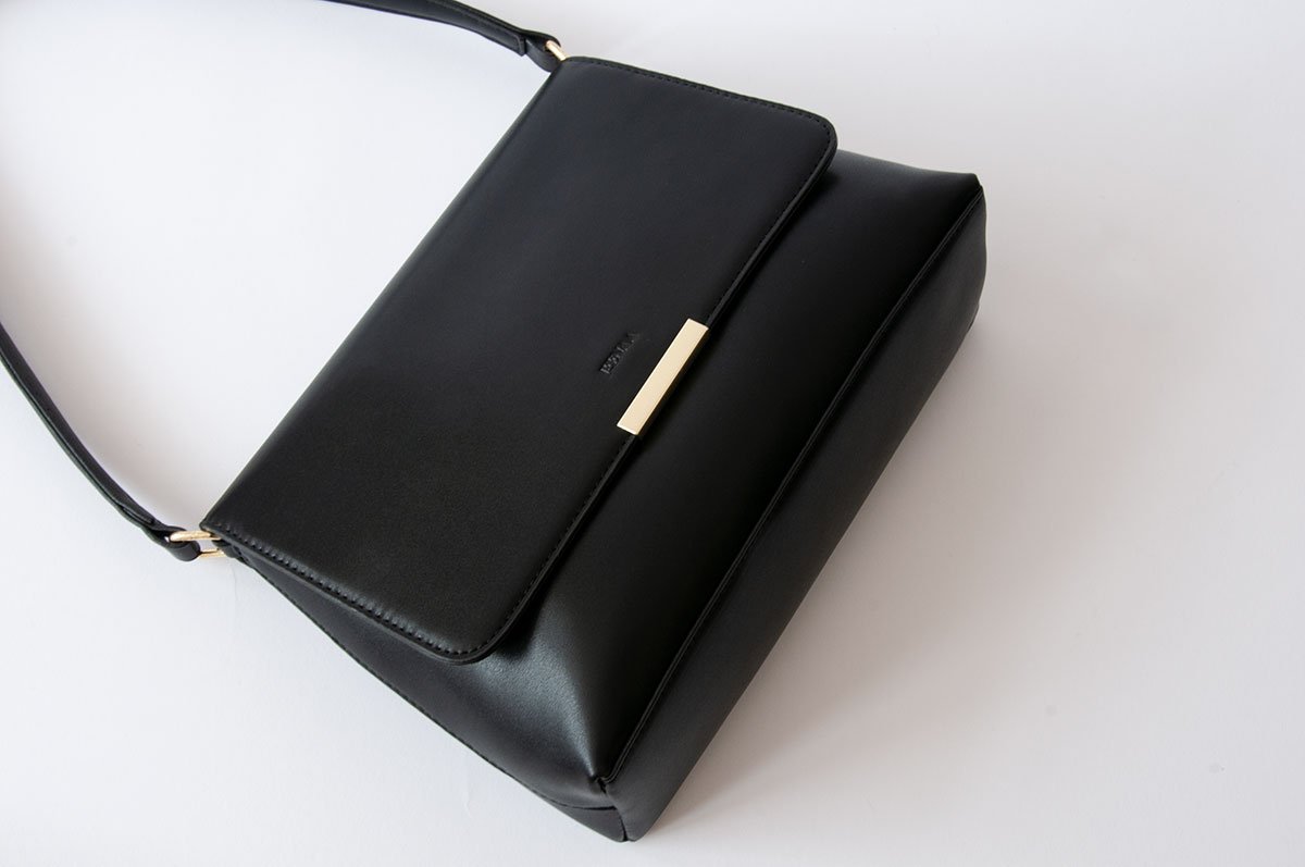 Simply timeless design in classic black, style effortlessly throughout every season. Beautiful gold touches enhance its elegant look. Perfect for casual and formal purposes. Wear over-the-shoulder or hold in hand.