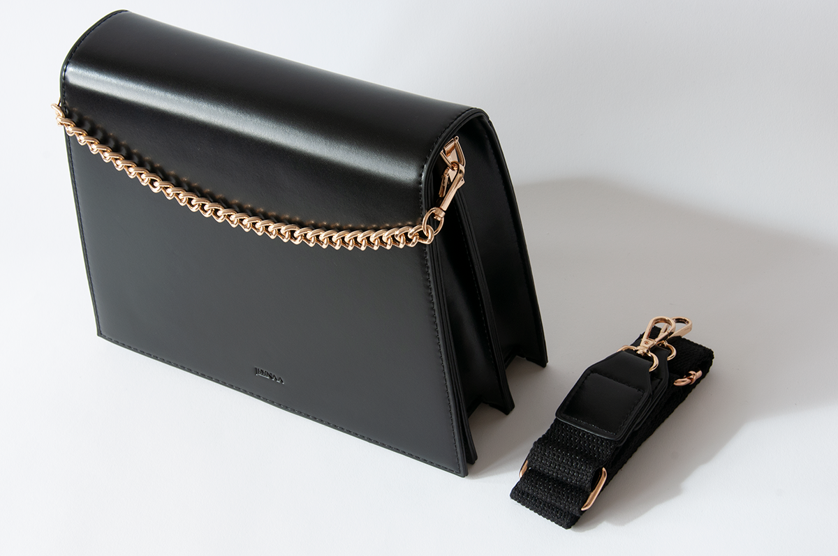 Your new favourite handbag to be worn daily. Perfect for commutes, formal meetings, and running errands. Choice of wearing it as cross-body, over-the-shoulder using its soft, wide cotton strap, or can be held in hand using its rich, gold chain, short strap or even styled as a clutch.