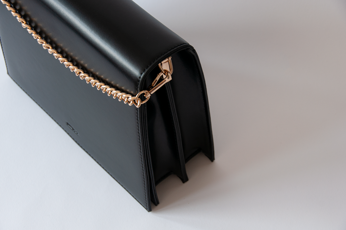 Elegant and minimal, structured with subtle curves. Two compartments helping keep you organised. Designed in England, made ethically in small production runs.