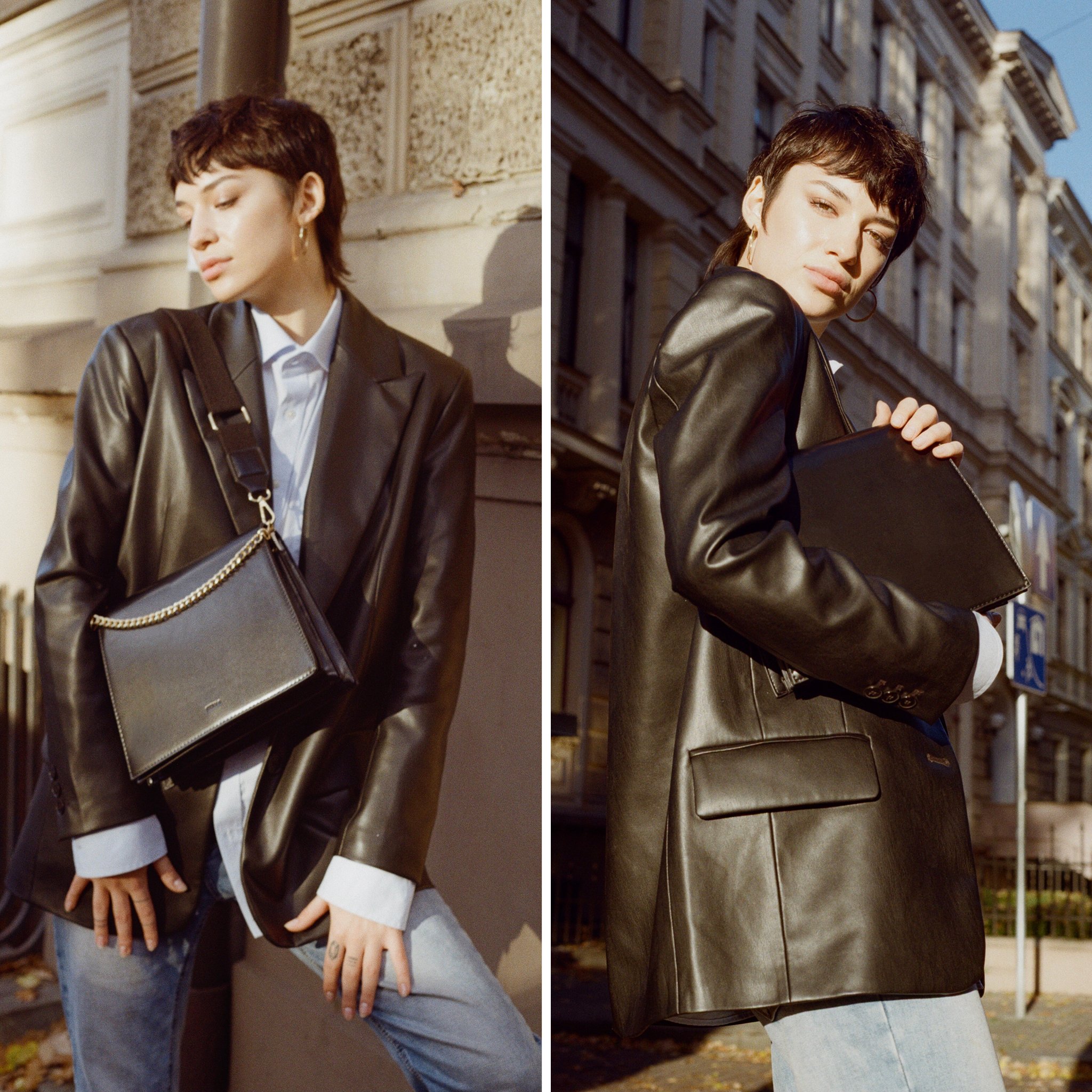 Vegan leather - 100% polyurethane (PU) material, with a detachable cotton strap.