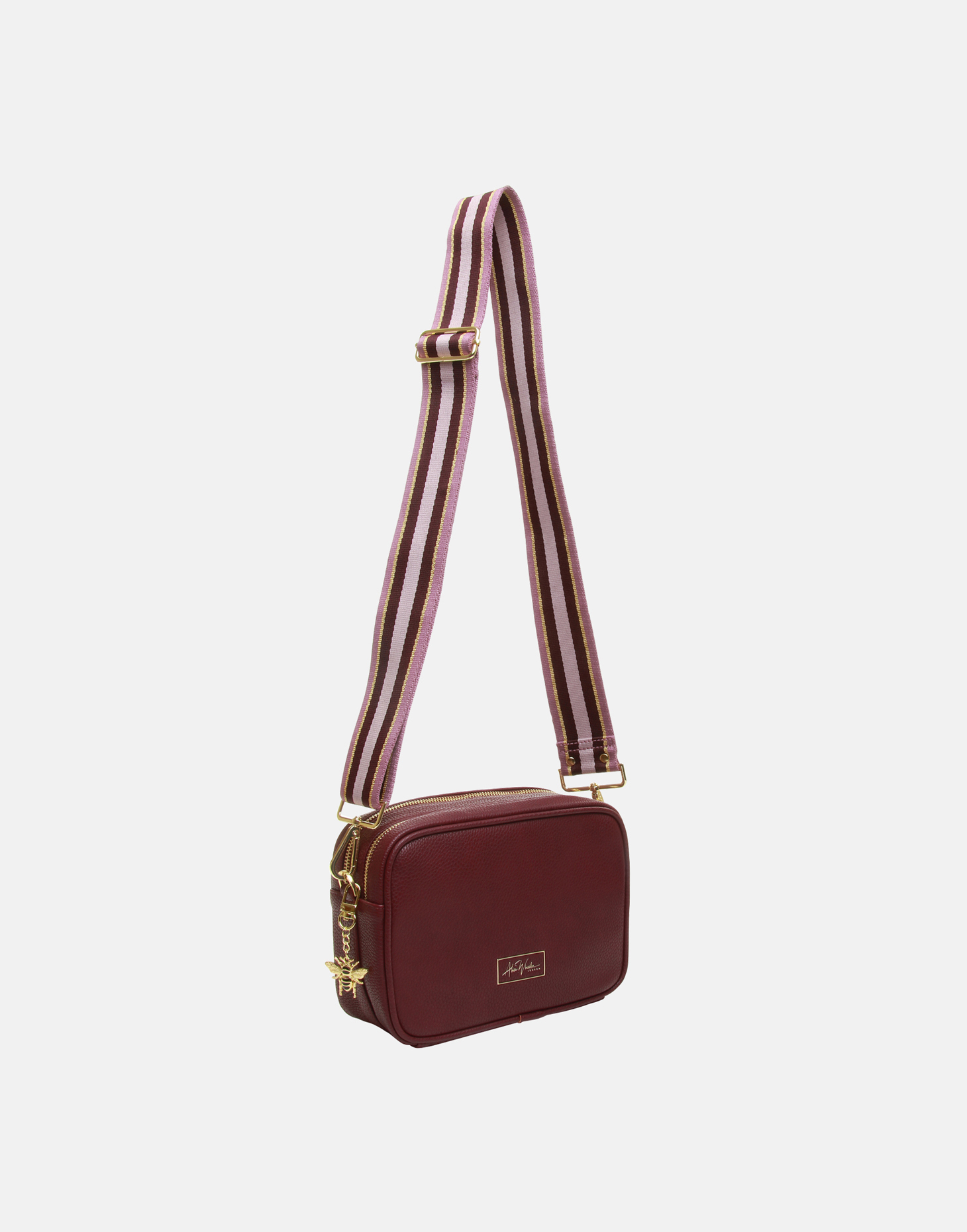 Alice Wheeler London Soho Dual Compartment Camera Cross Body Bag Plum (Stripe Strap)