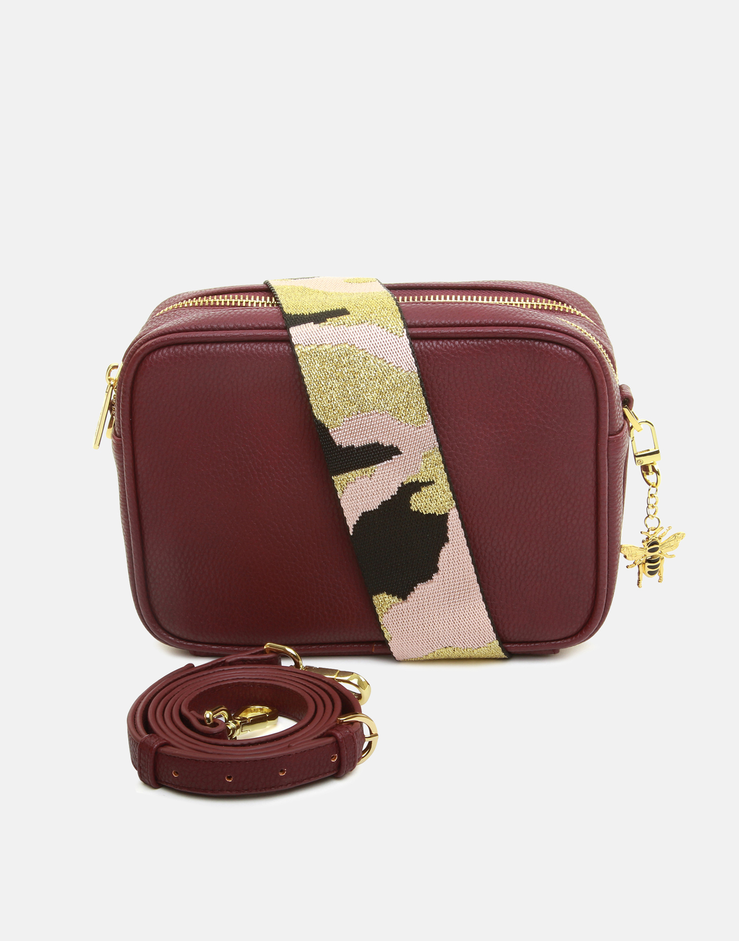 Each camera bag includes both a stylish patterned strap and matching colour co-ordinated strap, fully adjustable for you to wear crossbody or over the shoulder.Includes a handy internal zipped pocket to keep cards and small valuables safe and secure.Dimensions: - 22cm x 16cm x 8cmMaterial: Made from a soft faux leatherHardware: Premium Gold colour metal fittingsTo view other bags from the Alice Wheeler range click here