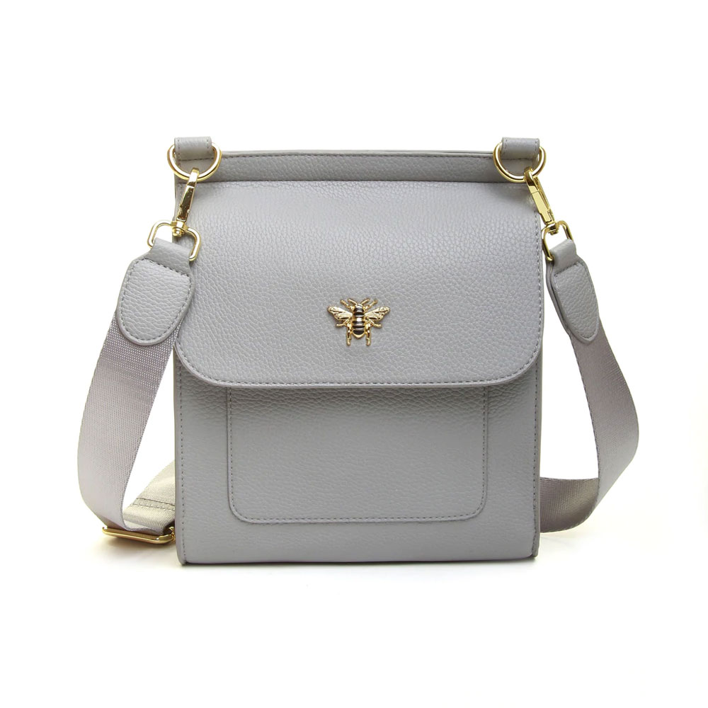 The Grey Alice Wheeler Bloomsbury Cross Body Post Bag, a super all rounder; Alice Wheeler's latest cross body is perfect for everyday or accessorising for that special night out. Finely crafted and available in an array of colourways, the bag has a deceptively generous compartment secured with a magnetic clasp and the front flap ensures all your personal belongings are secure.