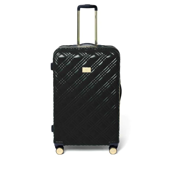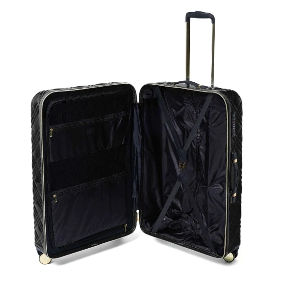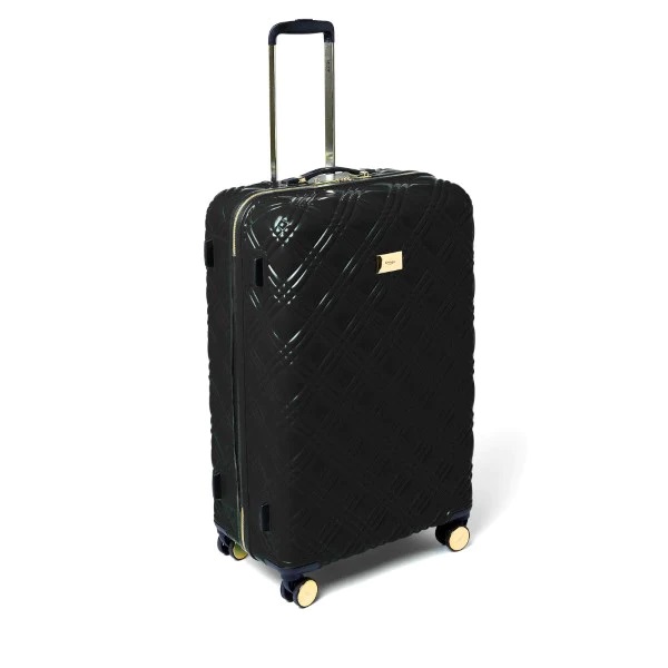 Dune London Orchester Black 67cm Medium Suitcase is made from a superlight and strong material which is impact resistant. Four smooth double wheels with 360° rotation and Dune London logo hubcaps. Internal pockets and straps for organised packing. A lightweight trolley system with signature gold finish. TSA Padlock included. A 2-year manufacturer's warranty