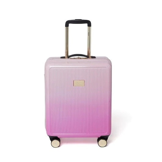 Dune London Olive Dip Dye Pink 55cm Cabin Suitcase is made from a super light and strong material which is impact resistant. Four smooth double wheels with 360° rotation and Dune London logo hubcaps. Internal pockets and straps for organised packing. A lightweight trolley system with signature gold finish. TSA Padlock included. A 2-year manufacturer's warranty