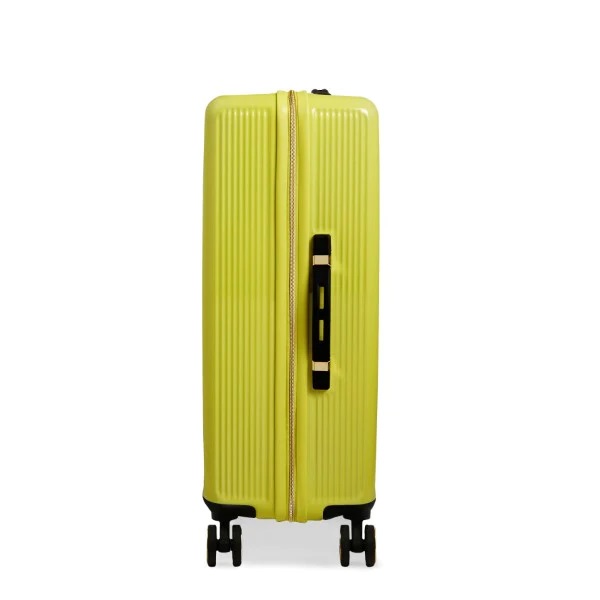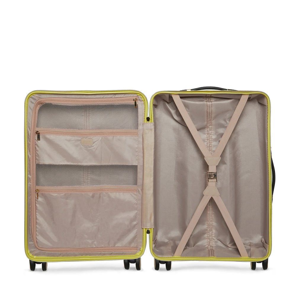Dune London Olive 67cm Medium Suitcase Lime Gloss is made from a superlight and strong material which is impact resistant. Four smooth double wheels with 360° rotation and Dune London logo hubcaps. Internal pockets and straps for organised packing. A lightweight trolley system with signature gold finish. TSA Padlock included. A 2-year manufacturer's warrantyDimensions: 67cm x 44cm x 27cmWeight: 3.6kgCapacity: 72 litres