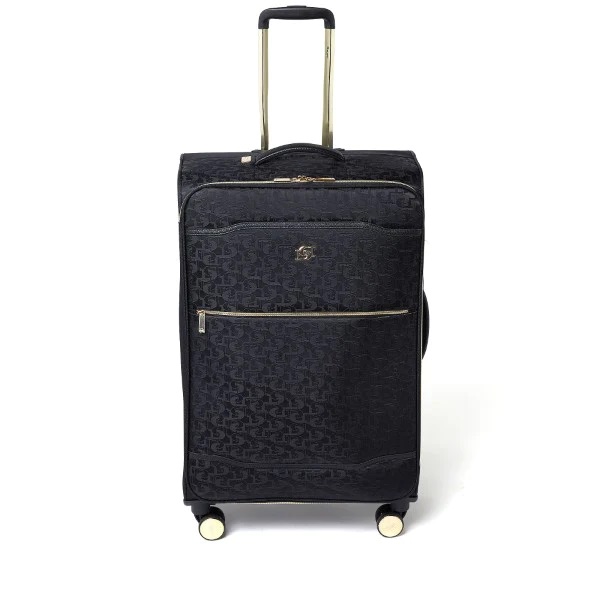 The Oriel Black Monogram collection is made from a superlight and durable abrasion resistant material. Four smooth double wheels with 360° rotation and Dune London logo hubcaps. Internal pockets and straps for organised packing. A lightweight trolley system with signature gold finish. TSA Padlock included. A 2-year manufacturer's warranty.