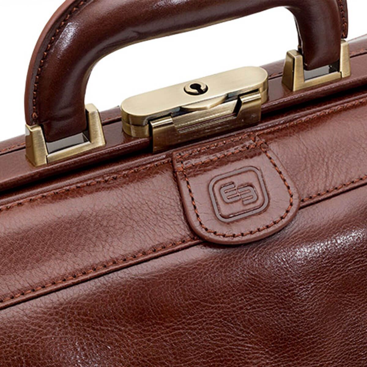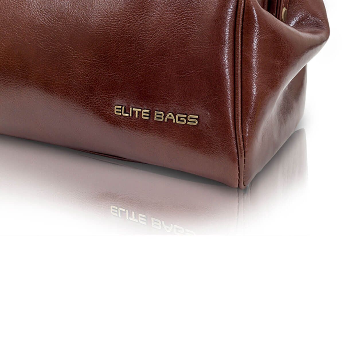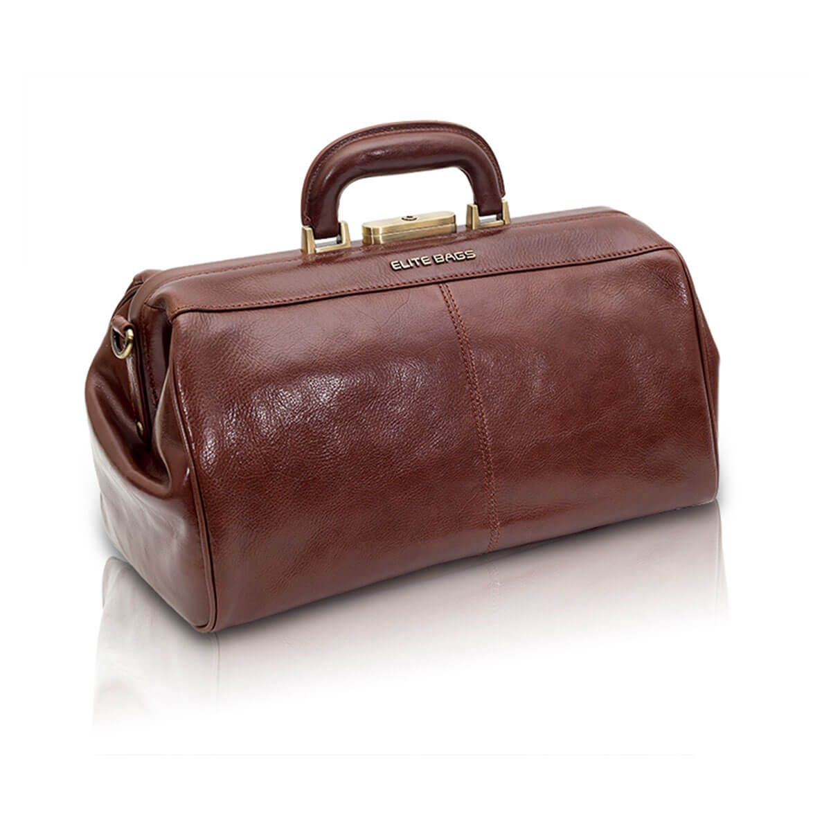 Traditional leather medical bag in a compact size allowing the user to carry essential material for basic medical interventions or diagnosis visits. This bag brings a touch of elegance and refinement to the health professional.