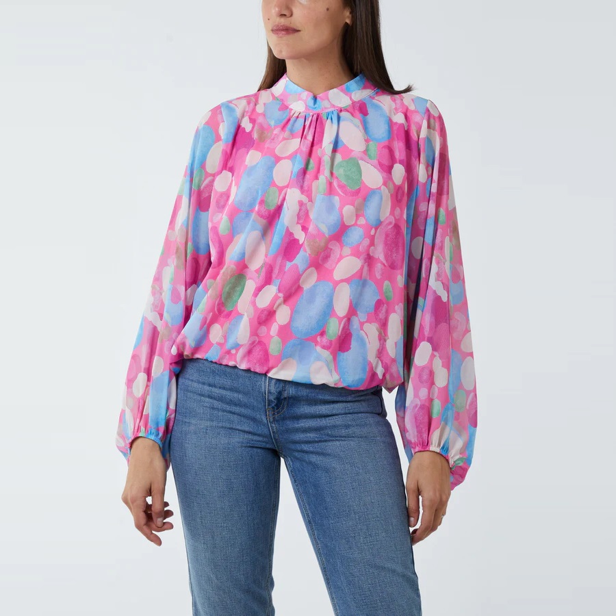 Helen Mcilroy High Neck Abstract Print Blouse in Hot PinkAdd this abstract print blouse to your workwear collection. This smart style makes this blouse elegant and professional. Wears well with smart trousers and loafers or glammed up with patent black heels!One Size (Fits 8-16UK)