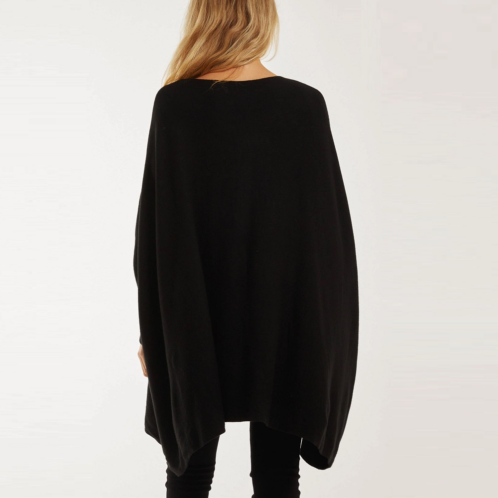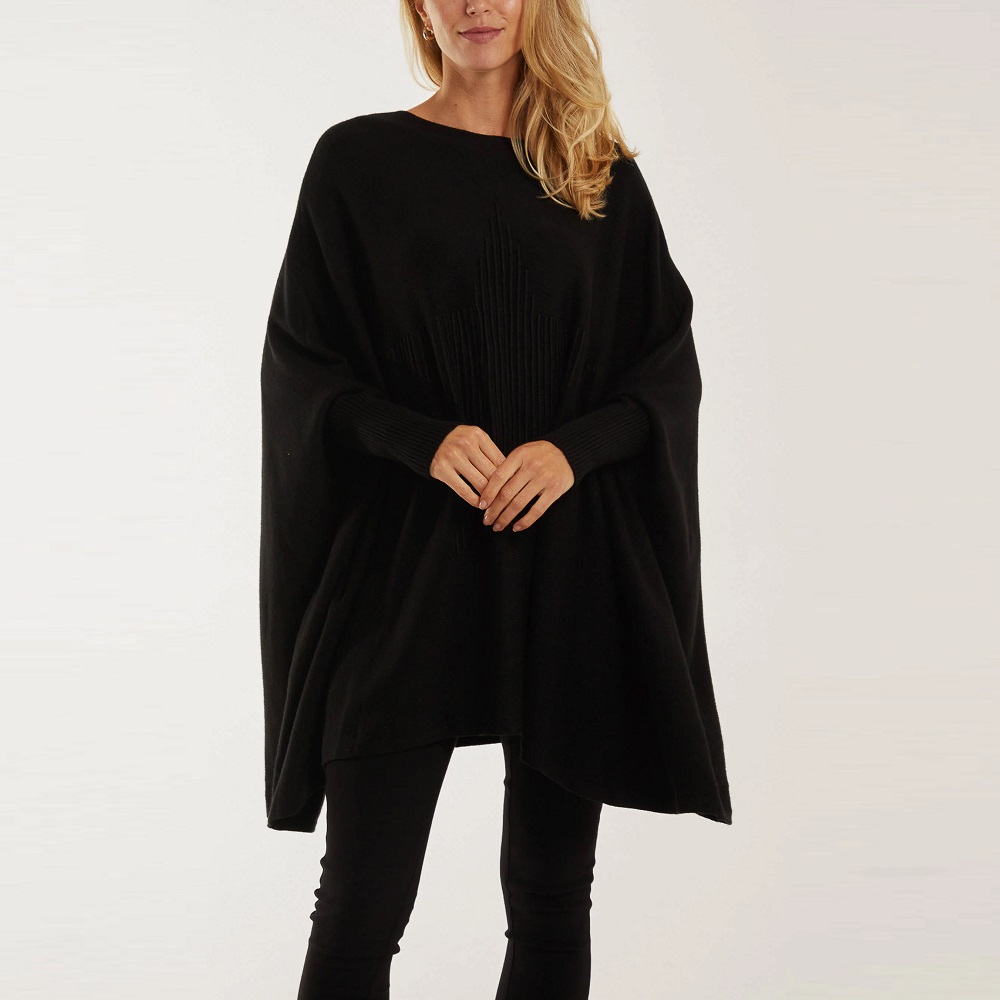 H Mcilroy London Ribbed Star Knitted Batwing Jumper in BlackThis batwing poncho provides a relaxed, comfortable fit that's perfect for everyday wear. Made from basic fabric, it's designed to provide a casual look that's both stylish and functional.