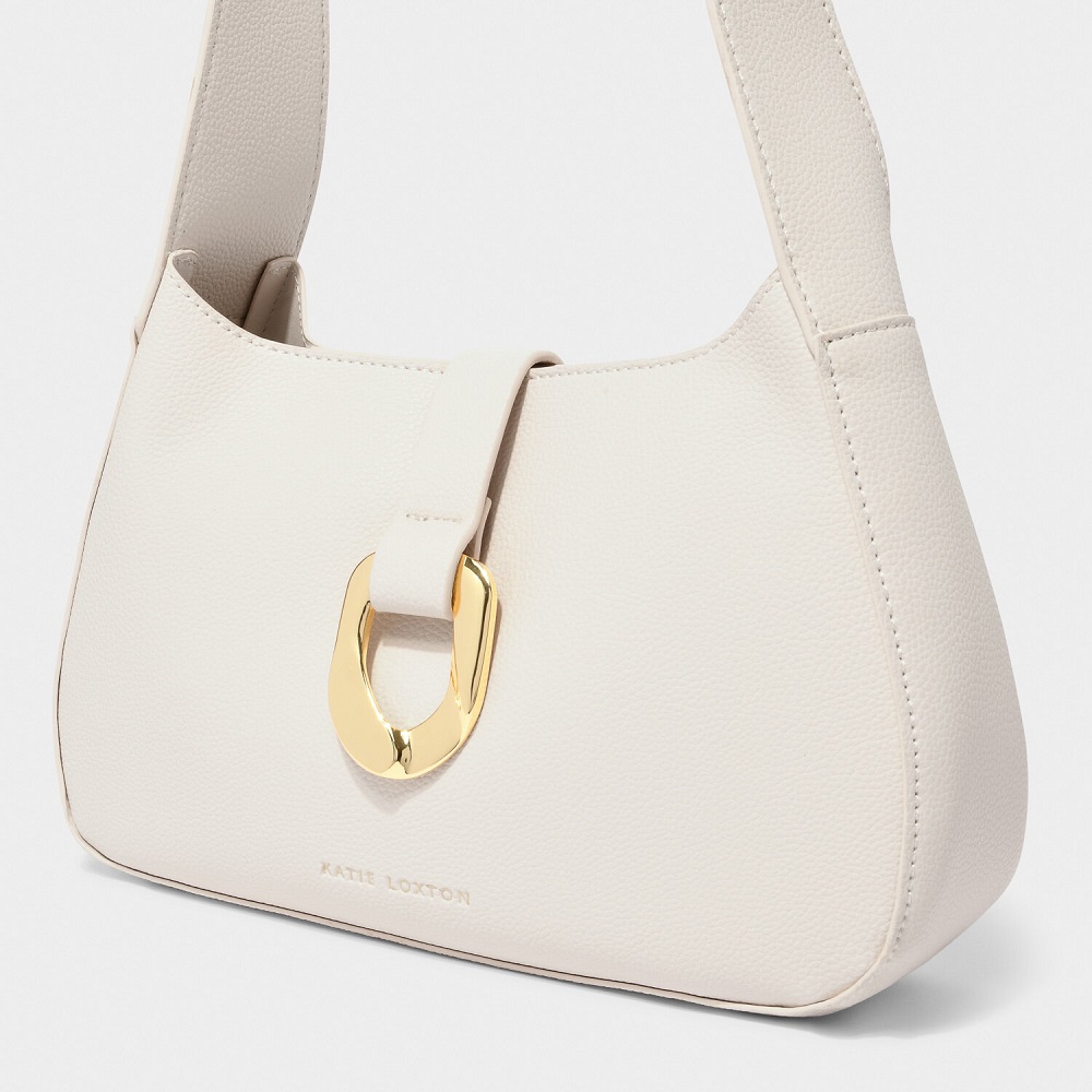 Katie Loxton Blake Small Shoulder Bag in Off WhiteKatie Loxton's Blake Small Shoulder Bag in Off White is a must-have staple for every fashionista. This chic and sophisticated design features soft vegan leather, a zip compartment, statement hardware and chic top handle. It's the perfect size to carry all of your customer's daily essentials. Plus, this style is also available in a matching larger size! Dimensions: H: 18cm W: 27.5cm D: 7cm
