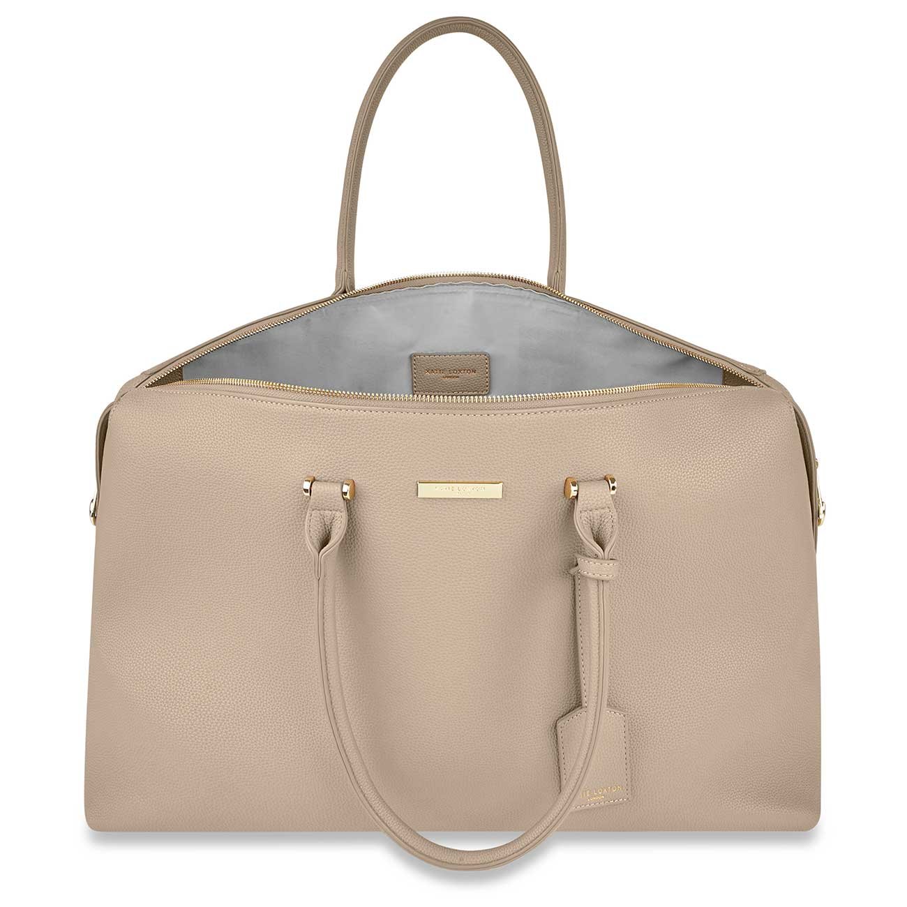 Discover the carryall you'll want to carry everywhere. Exploring different silhouettes whilst taking notes from our bestselling weekend bags, we designed the taupe Kensington bag with a softly structured silhouette and neatly tapered sides.