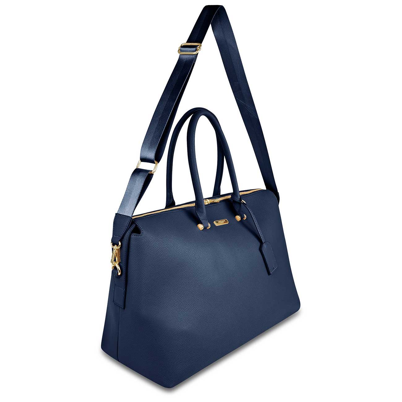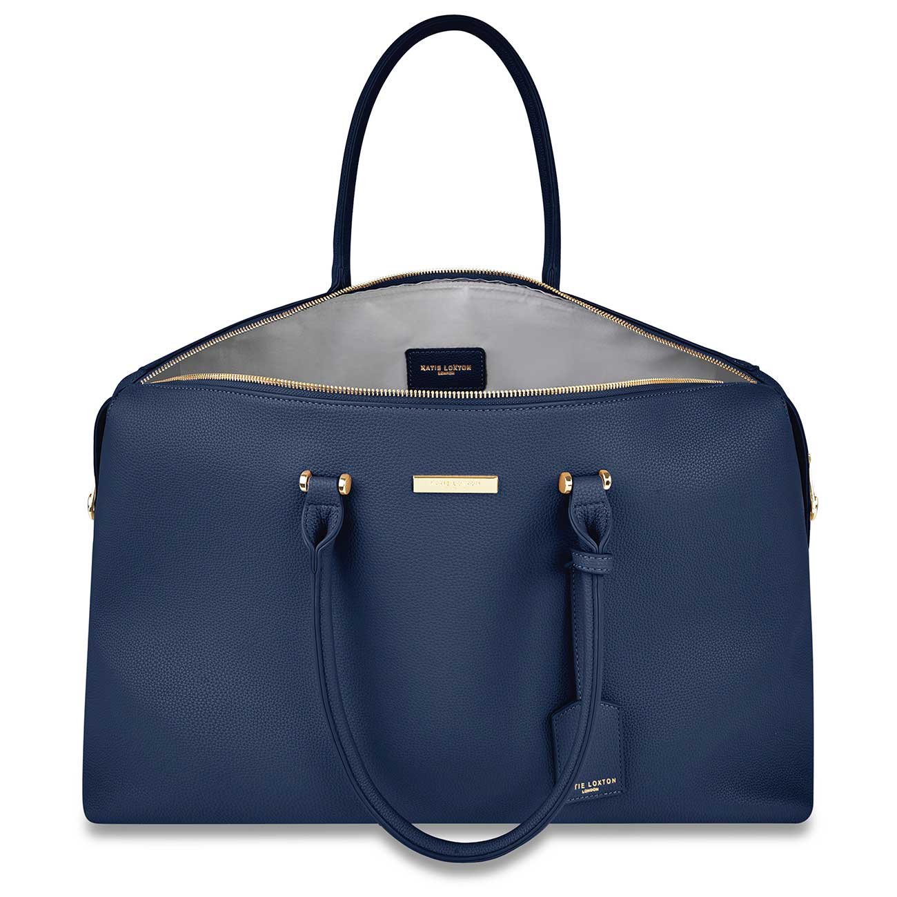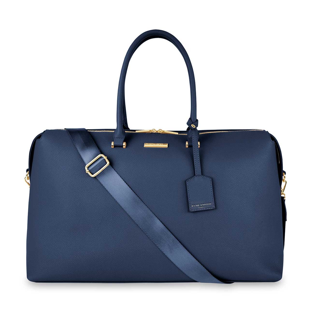 Discover the carryall you'll want to carry everywhere. Exploring different silhouettes whilst taking notes from our bestselling weekend bags, we designed the navy Kensington bag with a softly structured silhouette and neatly tapered sides.It comes with a top carry handle, detachable over the shoulder strap and a gorgeous complementing luggage tag, perfect for personalising. Our most luxurious weekend bag yet!