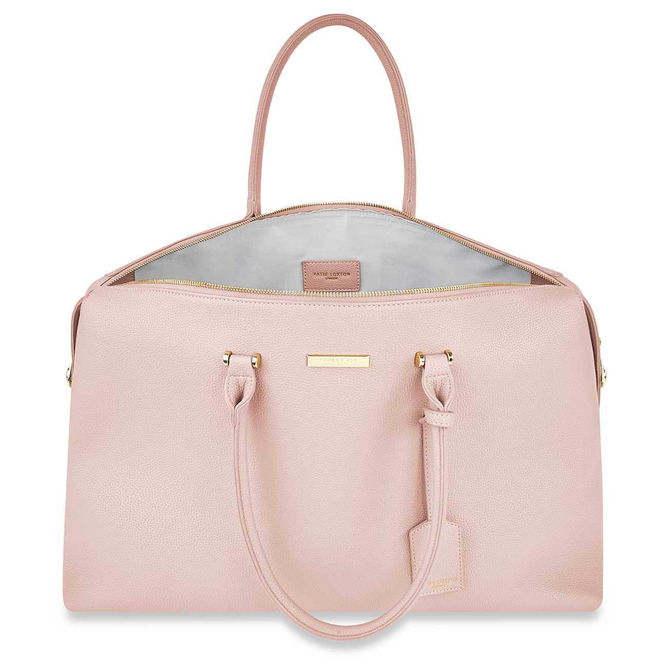 Discover the carryall you'll want to carry everywhere. Exploring different silhouettes whilst taking notes from our bestselling weekend bags, we designed the pink Kensington bag with a softly structured silhouette and neatly tapered sides.It comes with a top carry handle, detachable over the shoulder strap and a gorgeous complementing luggage tag, perfect for personalising. Our most luxurious weekend bag yet!
