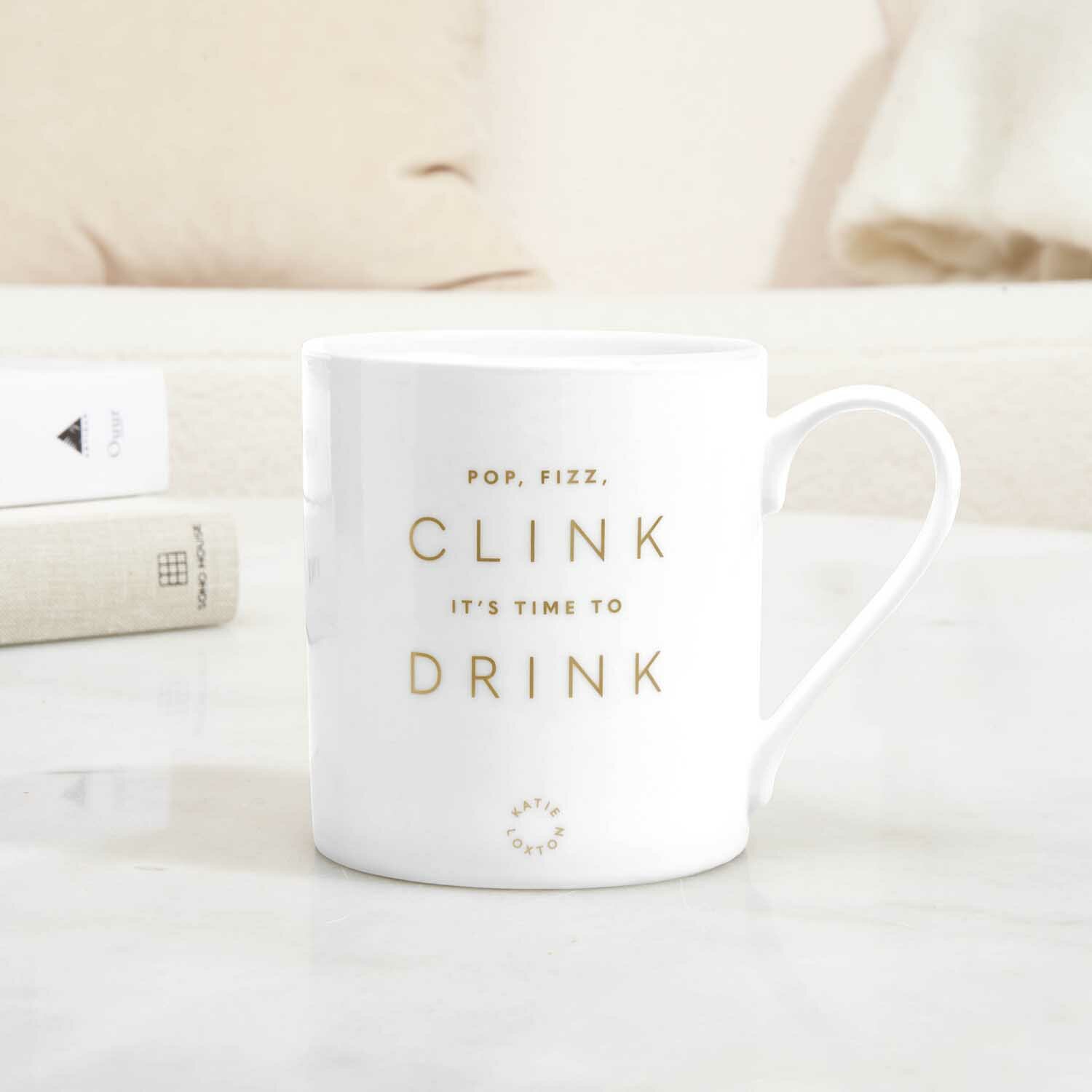 Make your morning coffee or afternoon tea that little bit more stylish with this gorgeous Porcelain Mug. Featuring the sweet golden sentiment 'Pop, Fizz, Clink, It's Time To Drink' on a chic white backdrop, complete with a navy gift box for the most perfect presentation. Put the kettle on!