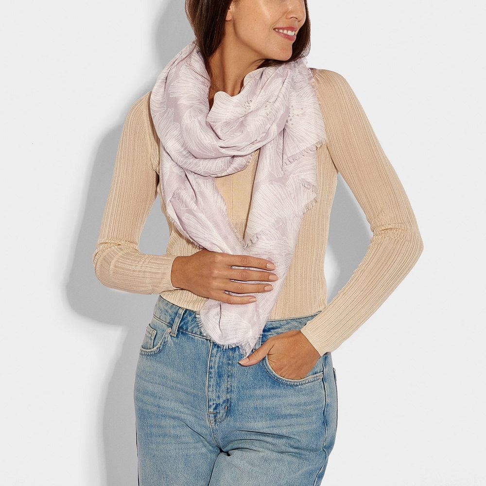 Katie Loxton Line Floral Scarf in Lilac & SilverAdd a pop of colour to your accessories offering with our Line Floral Scarf. Designed to keep you warm all year round with a soft woven material and an eye-catching pattern that is sure to turn heads for all the right reasons. With endless ways to style, whether it's worn around the neck, as a chic shawl, or tied around one of our gorgeous handbags - layering never looked so good!Size: H: 184cm W: 86cm D: 0.2cm