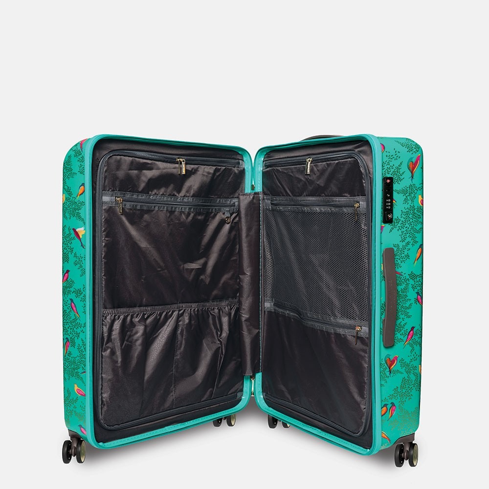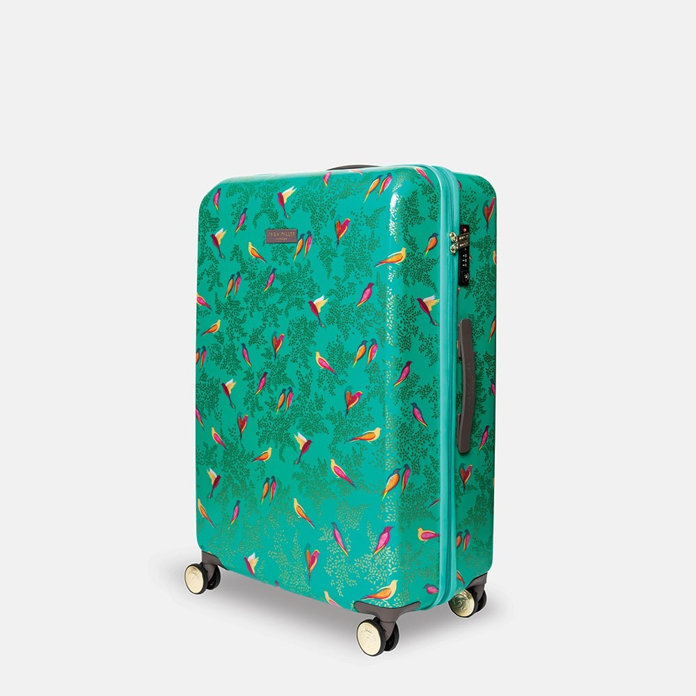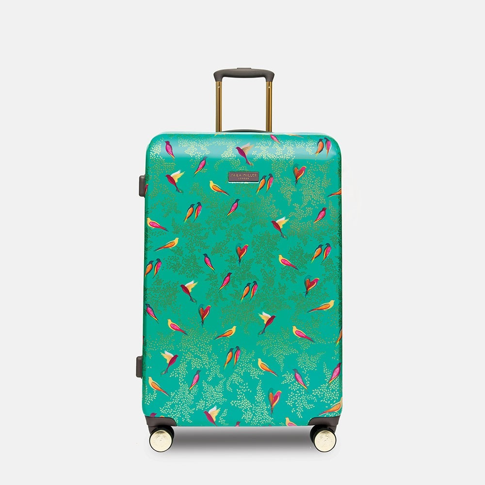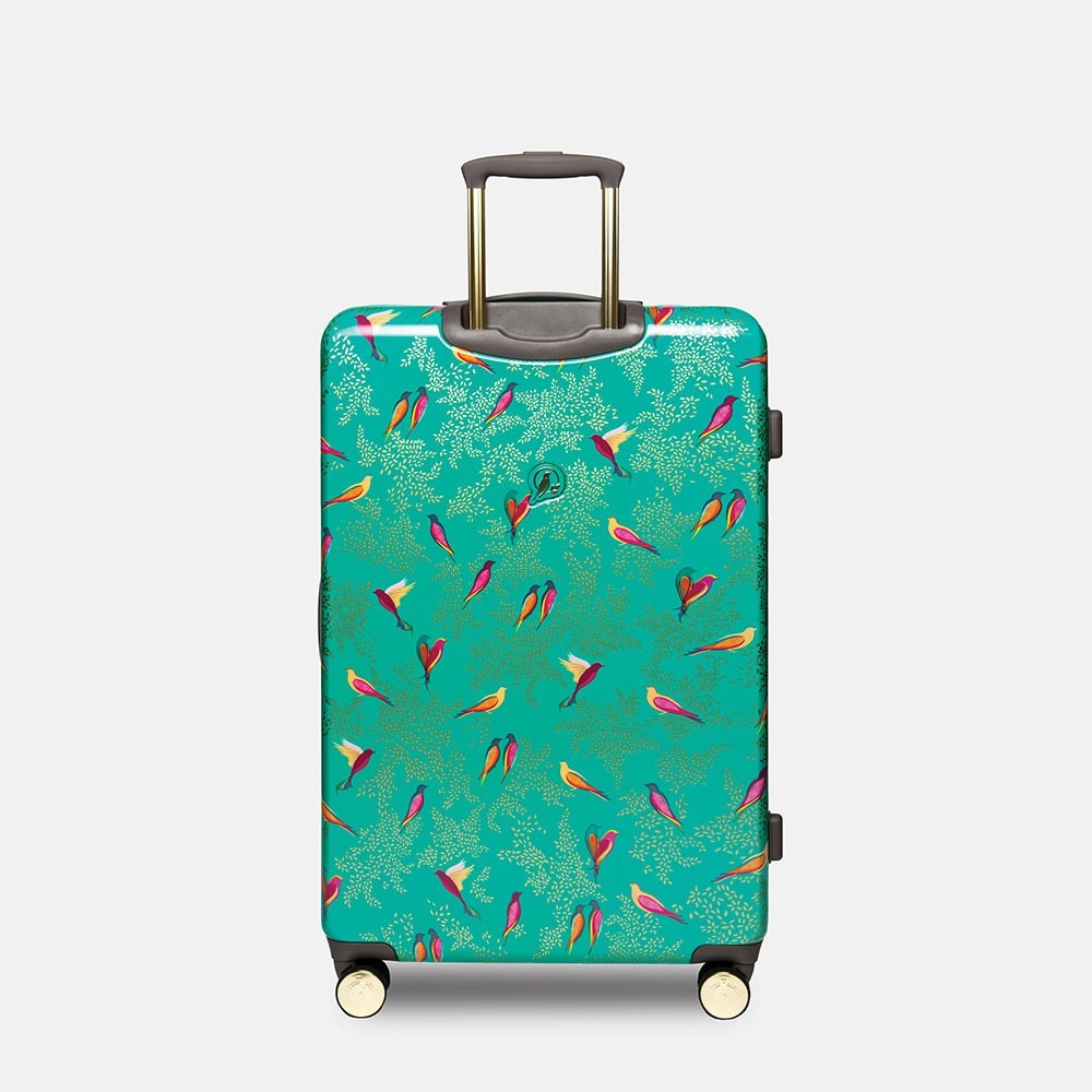 Add a touch of elegance to your travels with Sara Miller London Luggage. An elegant hardside Large Case featuring a distinctive embellished Sara Miller London print, crafted to ensure it is both durable and lightweight. Inside the case has been paired with a subtle two-tone grey leaf print lining complimenting the elegant, decorative outer design. The distinctive bird print is both vibrant and stylish with the added luxury of decorative gold details.