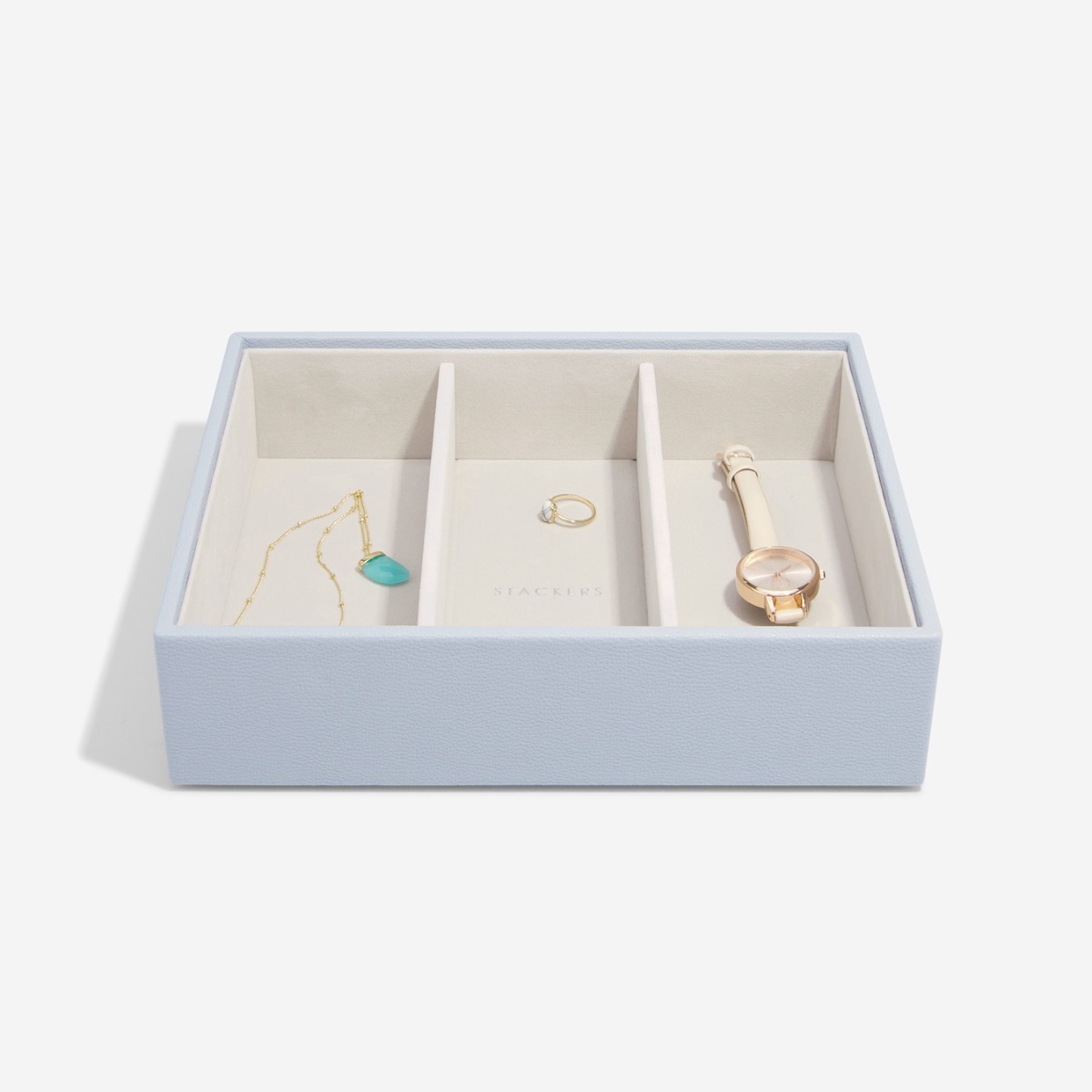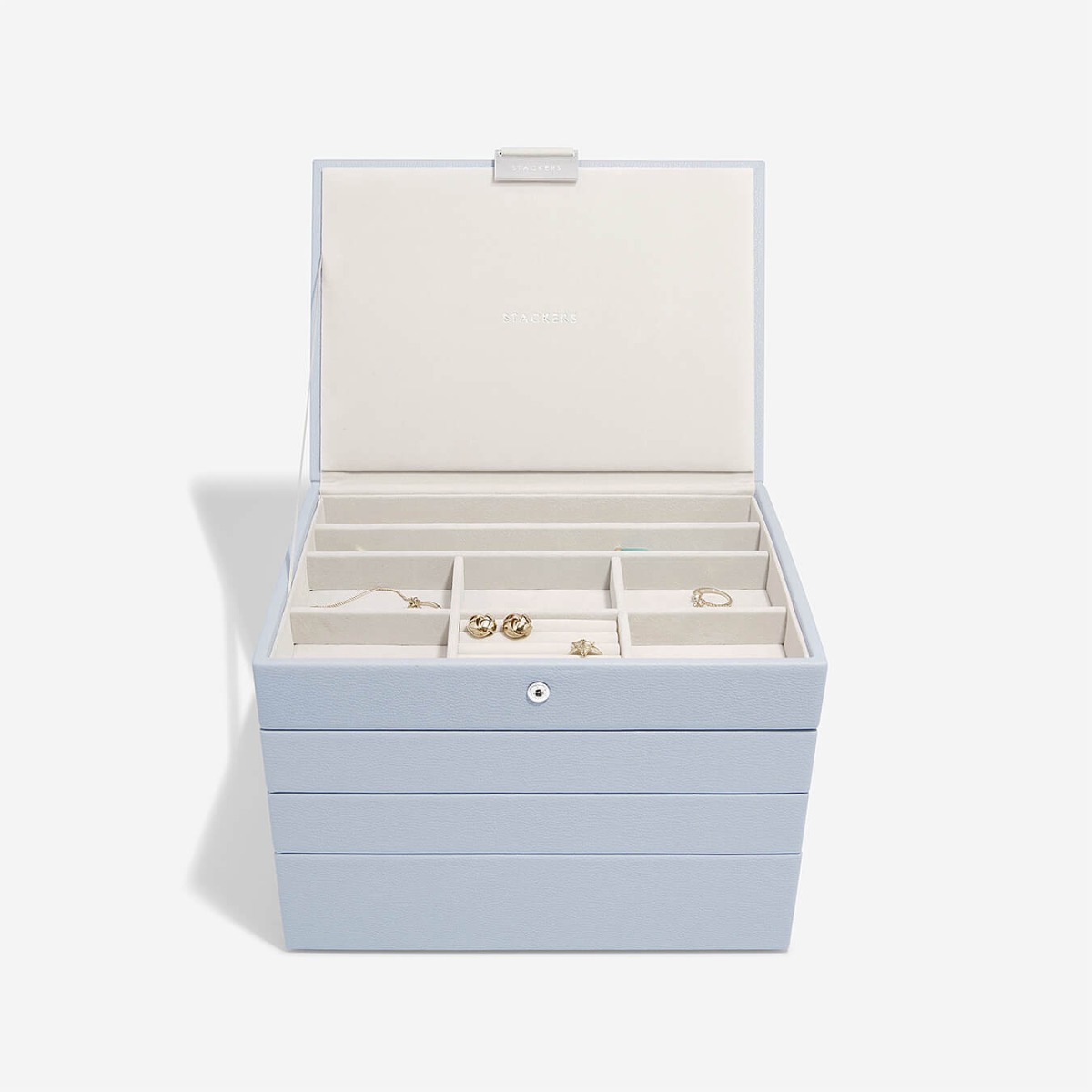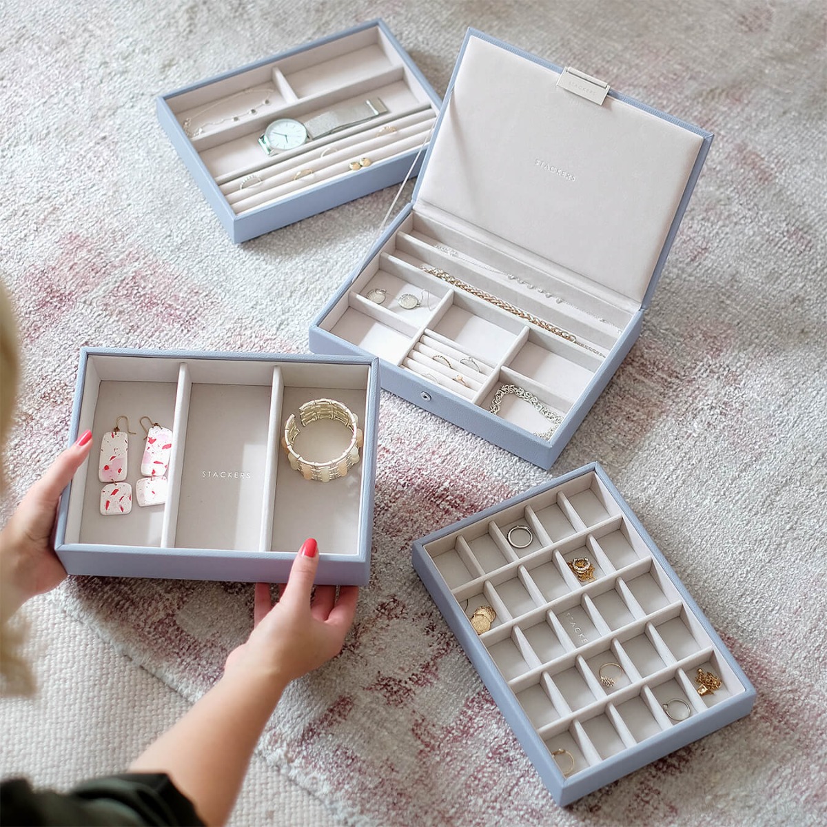 There'll be no excuse for your favourite jewellery to be anything other than tangle-free and organised!Our bestselling Classic Jewellery Box is ideal for almost every jewellery collection. With plenty of space to keep your necklaces, rings, earrings, watches and more, beautifully organised and safe. Whatsmore you can easily add another jewellery box layer as your collection grows!The classic set of 4 is perfect for those with a larger collection & includes the Jewellery Box Lid, Trinket Layer, Ring & Bracelet Layer & Watch/Accessories Layer.