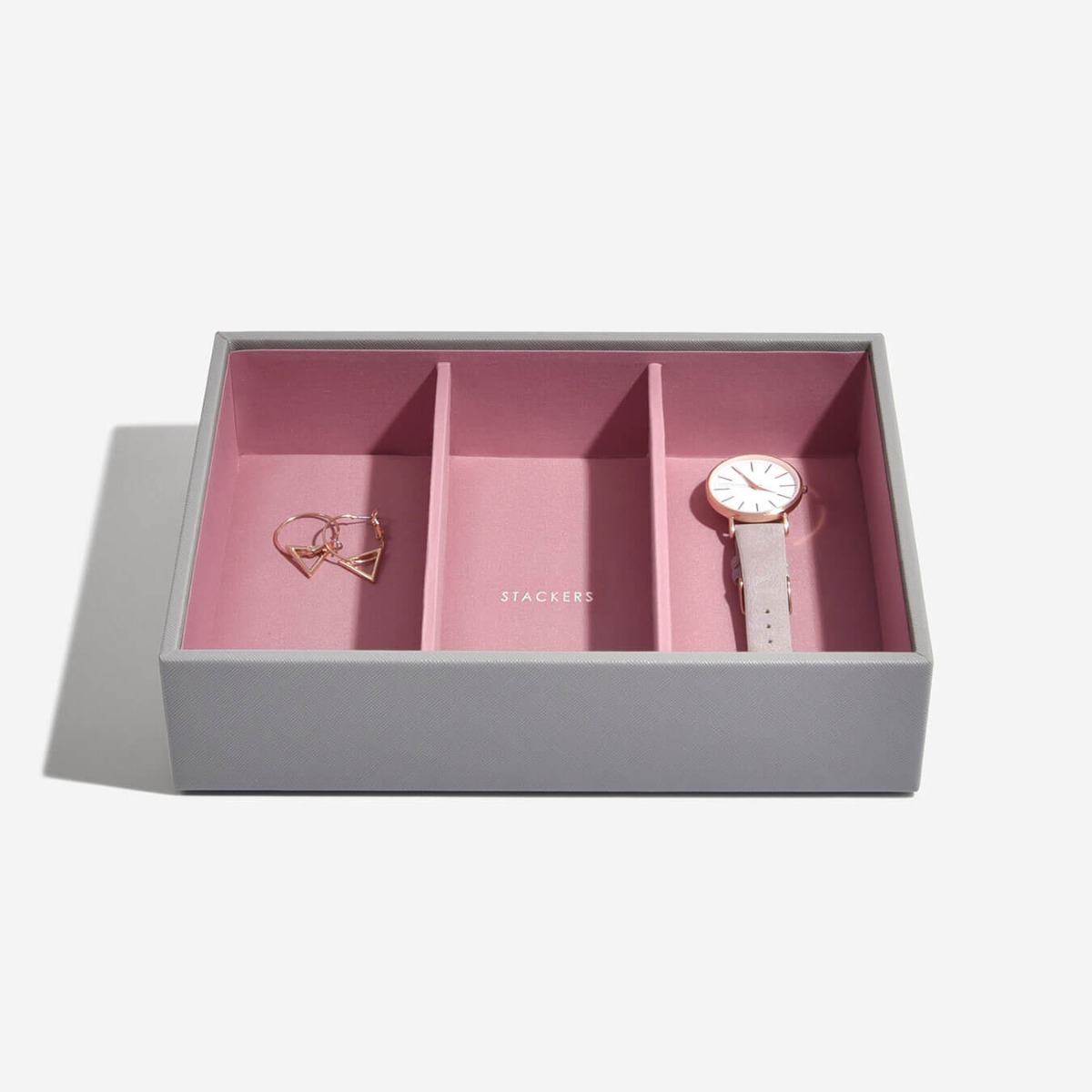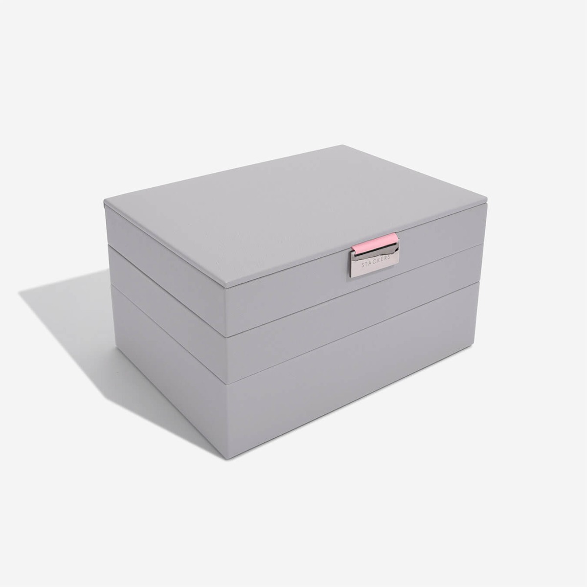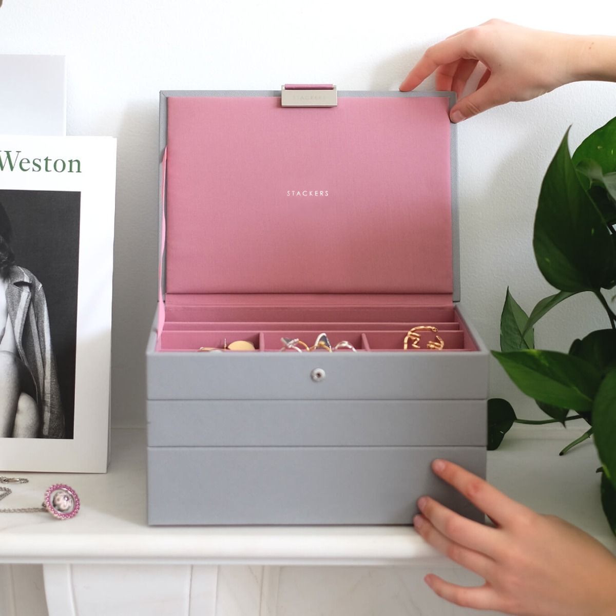 There'll be no excuse for your favourite jewellery to be anything other than tangle-free and organised! Our bestselling Classic Jewellery Box is ideal for almost every jewellery collection. With plenty of space to keep your necklaces, rings, earrings, watches and more, beautifully organised and safe. Whatsmore you can easily add another jewellery box layer as your collection grows!The classic set is the ideal starting point and includes the Jewellery Box Lid, the Trinket Layer and the Watch/Accessories Layer.Don't forget you can tailor your jewellery box even further with new layers and accessories.