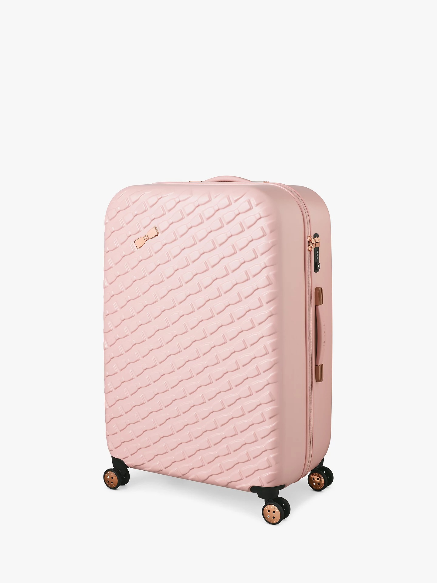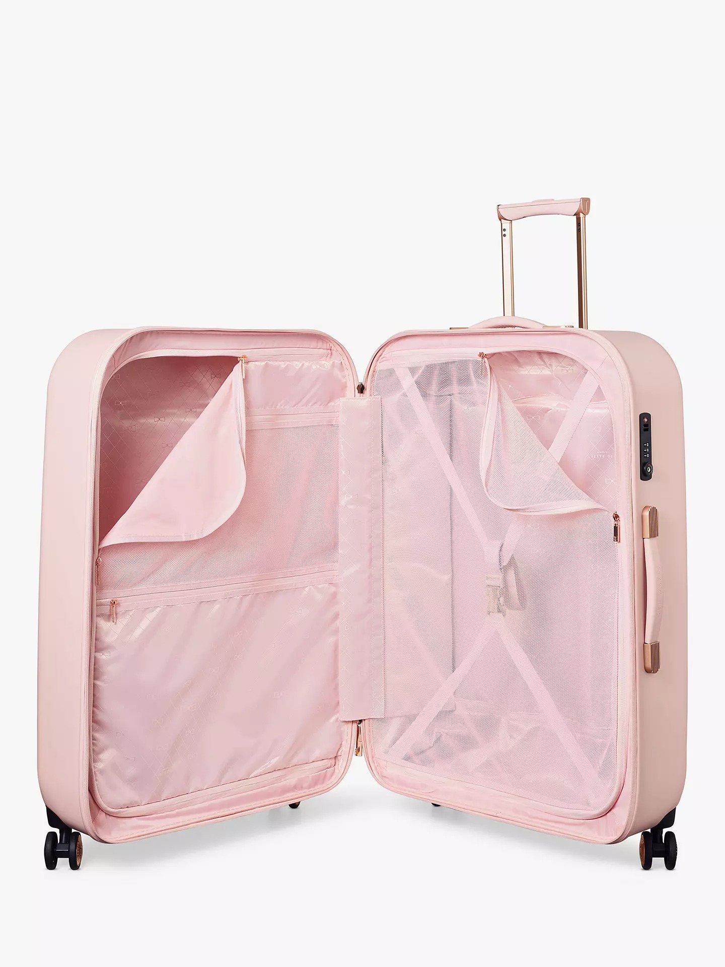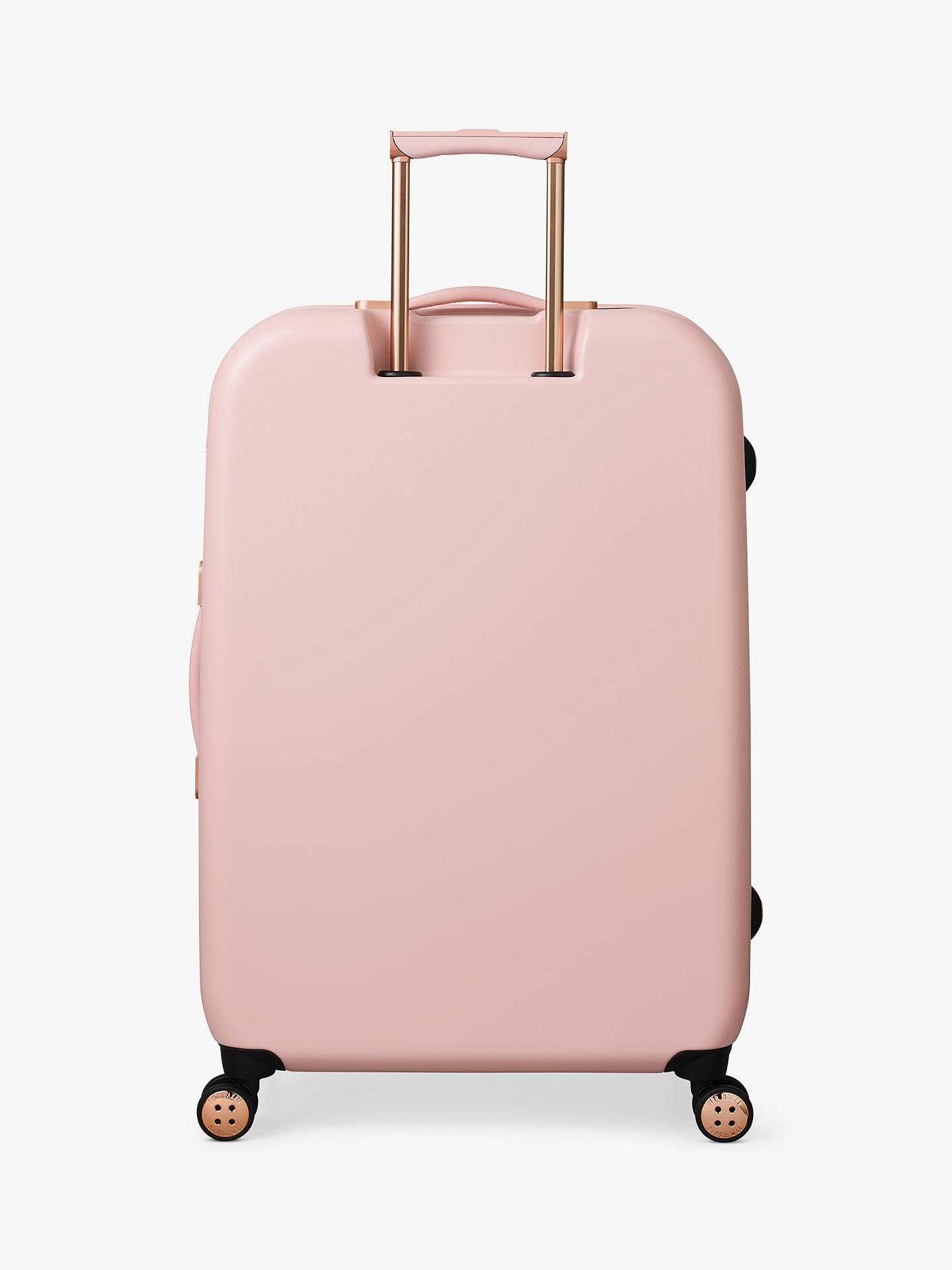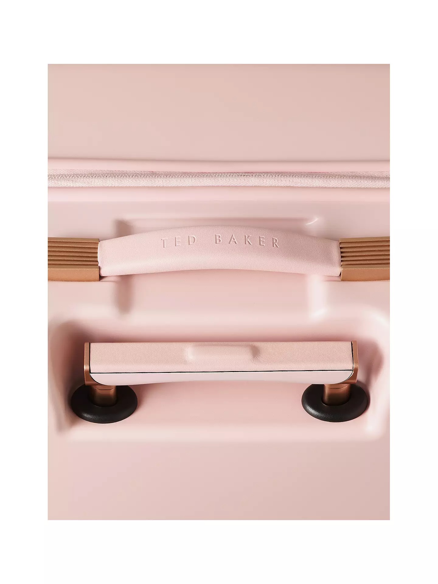 The state of the art aircraft grade aluminium has a lightweight trolley system, with full bespoke Ted Baker hardware in rose gold finish. Four smooth rolling double wheels for ultimate 360 degree manoeuvrability.
