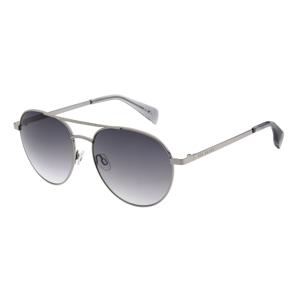 Ted Baker Konrad Men's Metal Pilot Sunglasses in Light Gunmetal & Graduated Grey LensesTed Baker bring you these metal pilot sunglasses with a twist. With a modern take on the traditional shape, this light gunmetal sunglass is a rounded shape and features graduated grey lenses, a double bridge and adjustable nose pads. This frame is suitable to be glazed with a prescription lens by your optician.