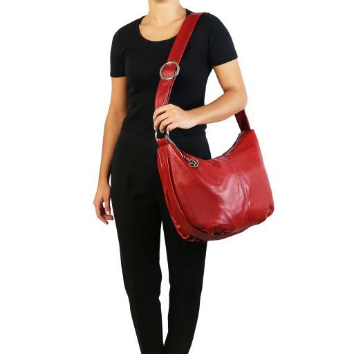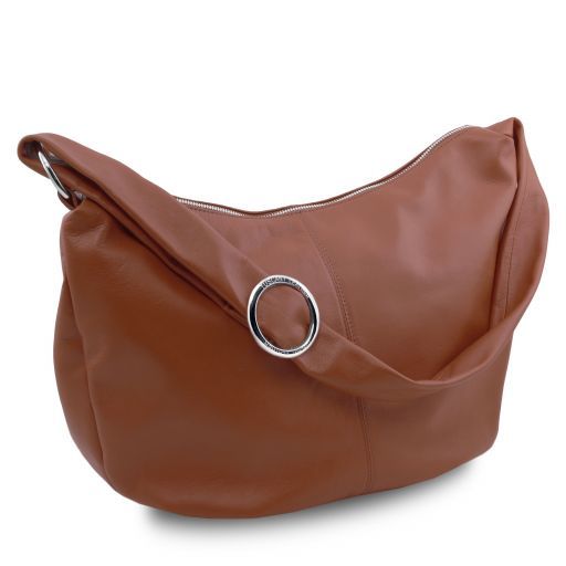Main features- Soft structure- Adjustable leather shoulder strap- 2 compartments- Soft full grain leather