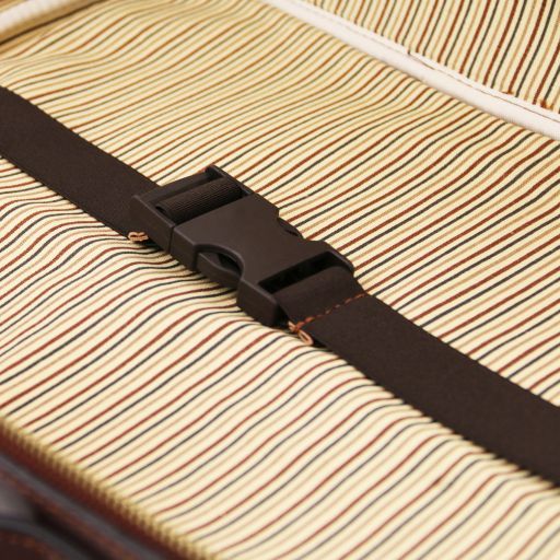 • - Detachable and adjustable leather shoulder strap