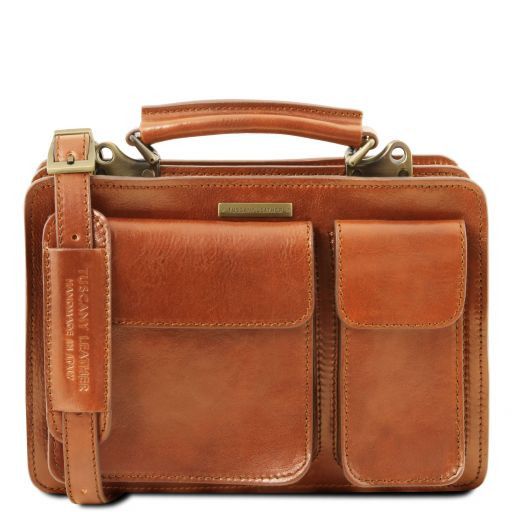 Main features- Detachable and adjustable leather shoulder strap- Full grain hand stained vegetable tanned leather- Rigid structure- 2 compartments