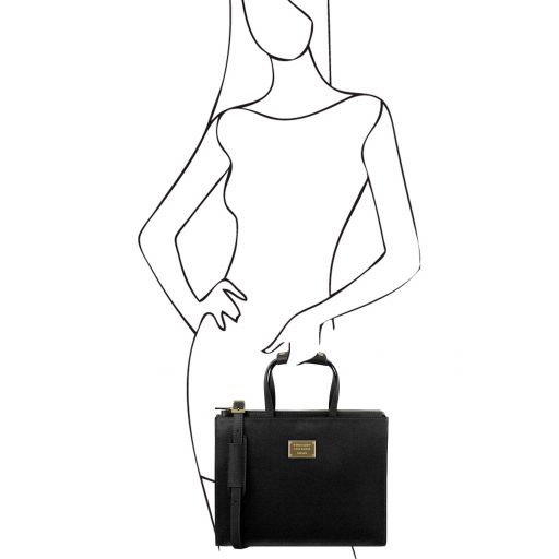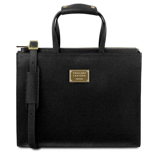 Tuscany Leather Palermo Saffiano Leather Briefcase 3 Compartments For Women Black