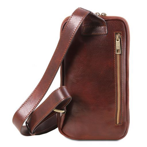 Main features- Full grain hand stained vegetable tanned leather- Adjustable leather shoulder strap- Semi-rigid structure- 1 compartment
