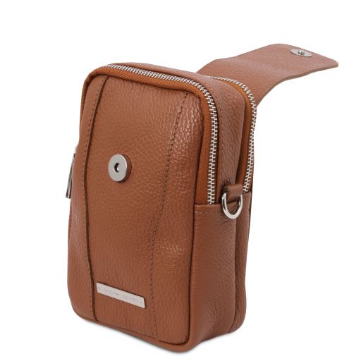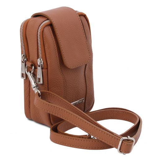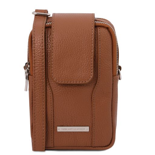 Tuscany Leather Soft Leather Cellphone Holder Mini Cross Bag Cognac