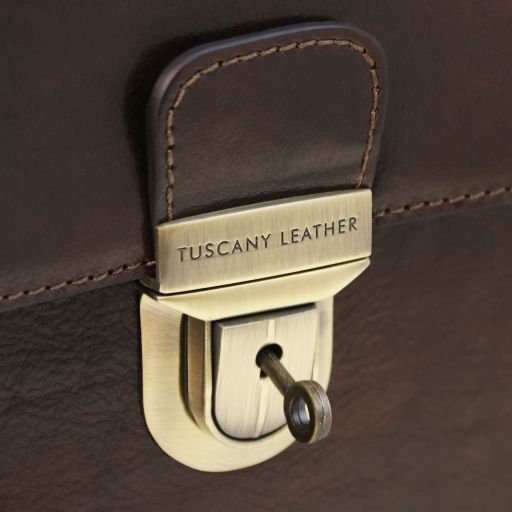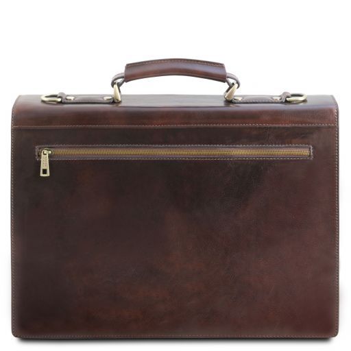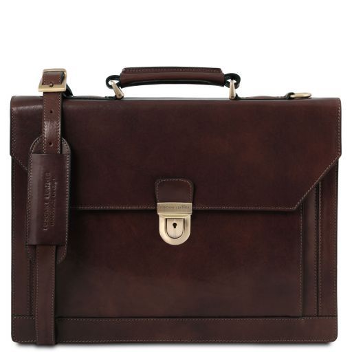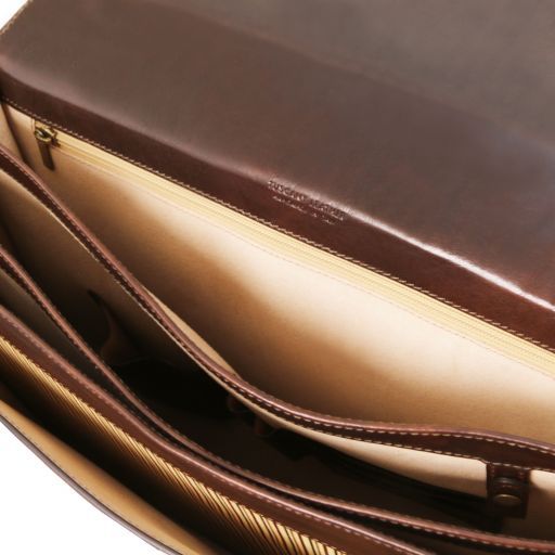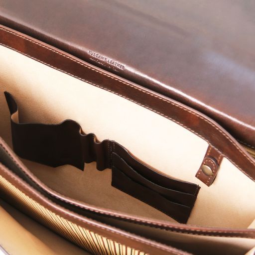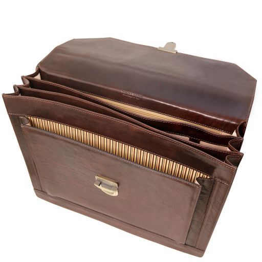 Tuscany Leather Cremona Briefcase 3 Compartments Dark Brown