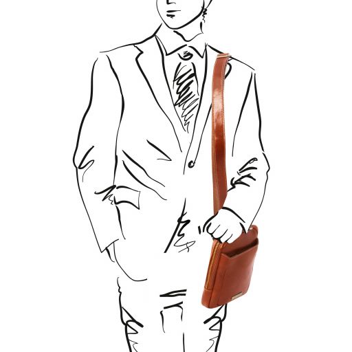 Main features- Full grain hand stained vegetable tanned leather- Semi-rigid structure- 1 compartment- Adjustable leather and cloth shoulder strap