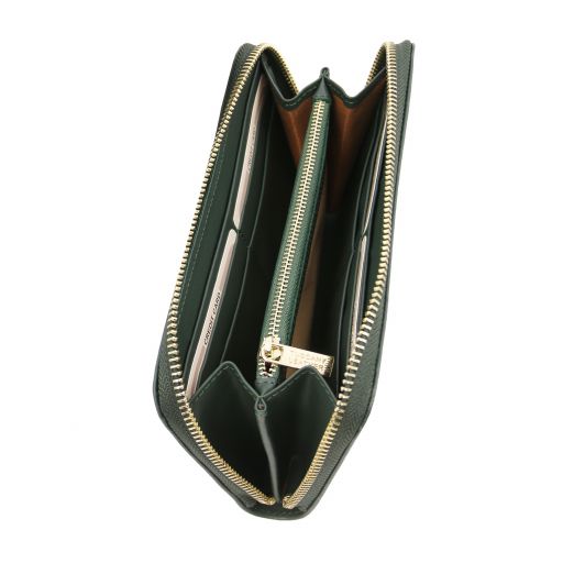Tuscany Leather Exclusive Accordion Wallet With Zip Closure Forest Green