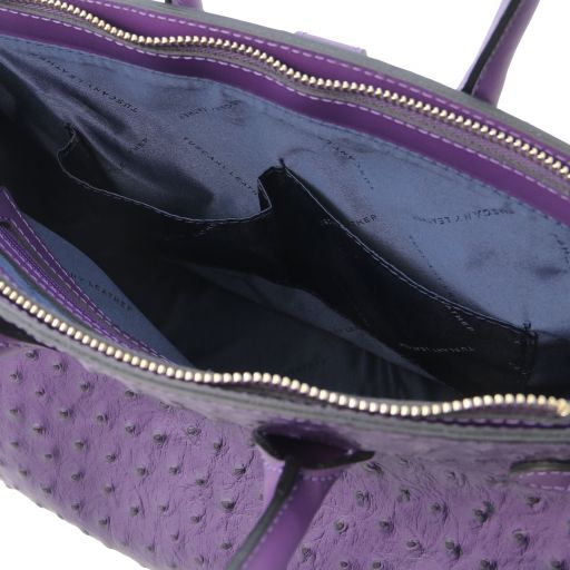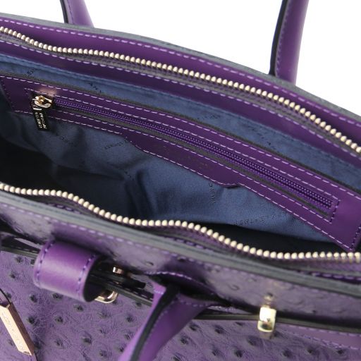 Tuscany Leather Handbag In Ostrich-Print Purple