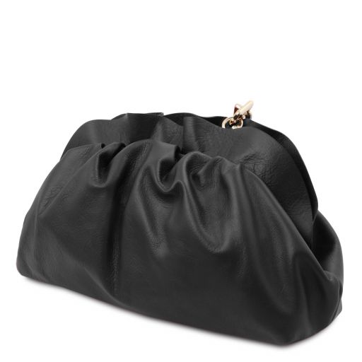 Tuscany Leather TL Bag Soft Leather Clutch With Chain Strap Black