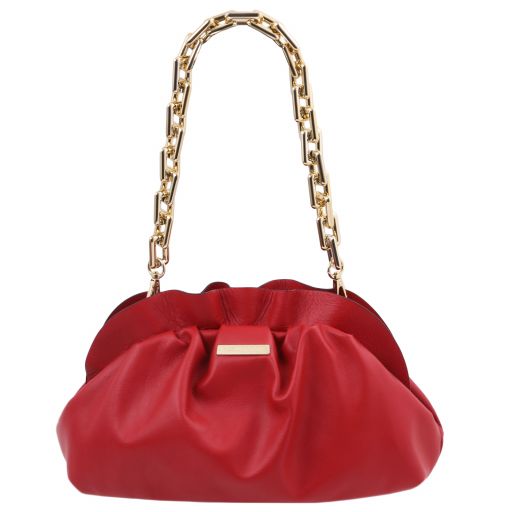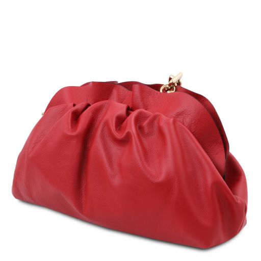Tuscany Leather TL Bag Soft Leather Clutch With Chain Strap Lipstick Red