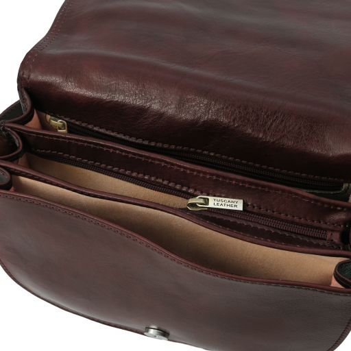 This stunning Italian leather saddle bag is handcrafted in Florence from a full grain Tuscany leather, which has been veg tanned & buffed by hand to give this beautiful sheen to the leather. Under the front magnetic closure are 3 main pockets, the one nearest to the front & rear are deep slip pockets. The 3rd central pocket is a zipped slip pocket section. The interior is finish in a natural leather and the exterior is complimented with premium quality brass hardware fittings & zips. Comes with an adjustable leather shoulder strap.Main features- Full grain hand stained vegetable tanned leather- Adjustable leather shoulder strap- Rigid structure- 3 compartments
