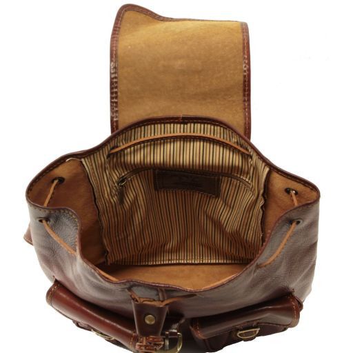 Main features- Full grain hand stained vegetable tanned leather- 1 compartment- 2 adjustable leather shoulder straps