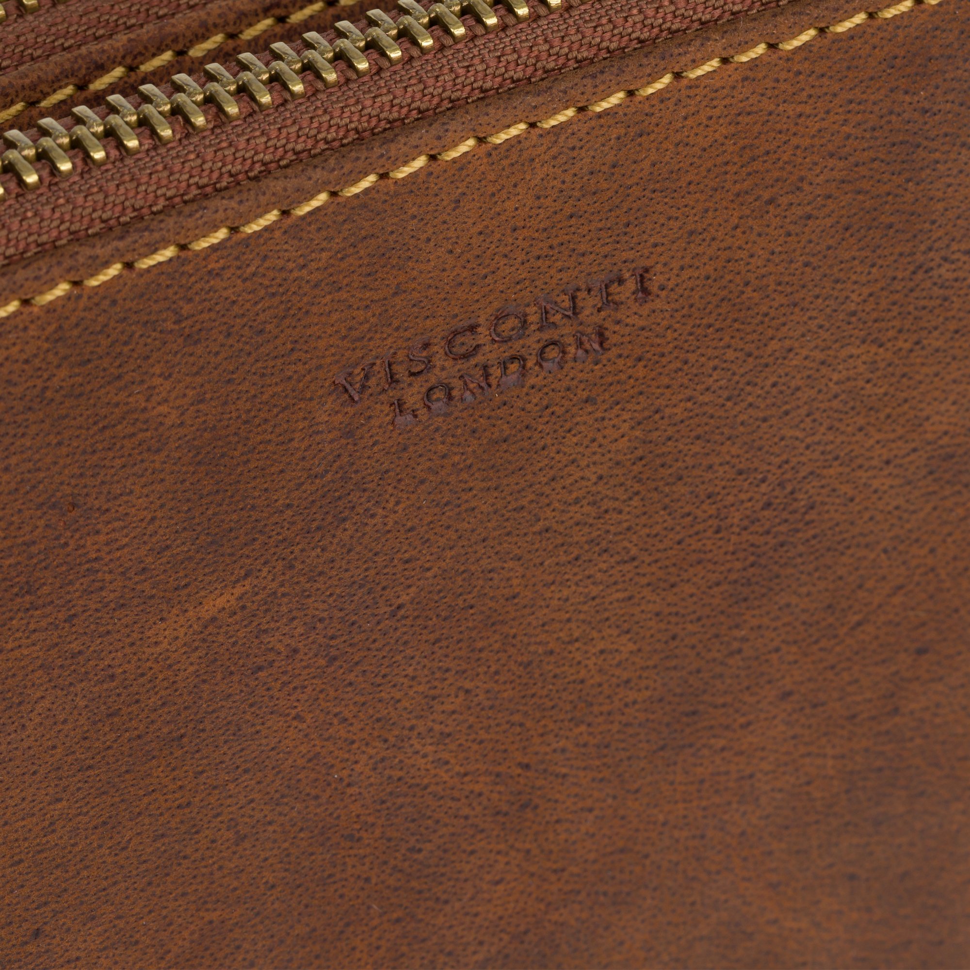 Visconti Leather Eden Small Ziptop Large Clutch Bag Oil Tan