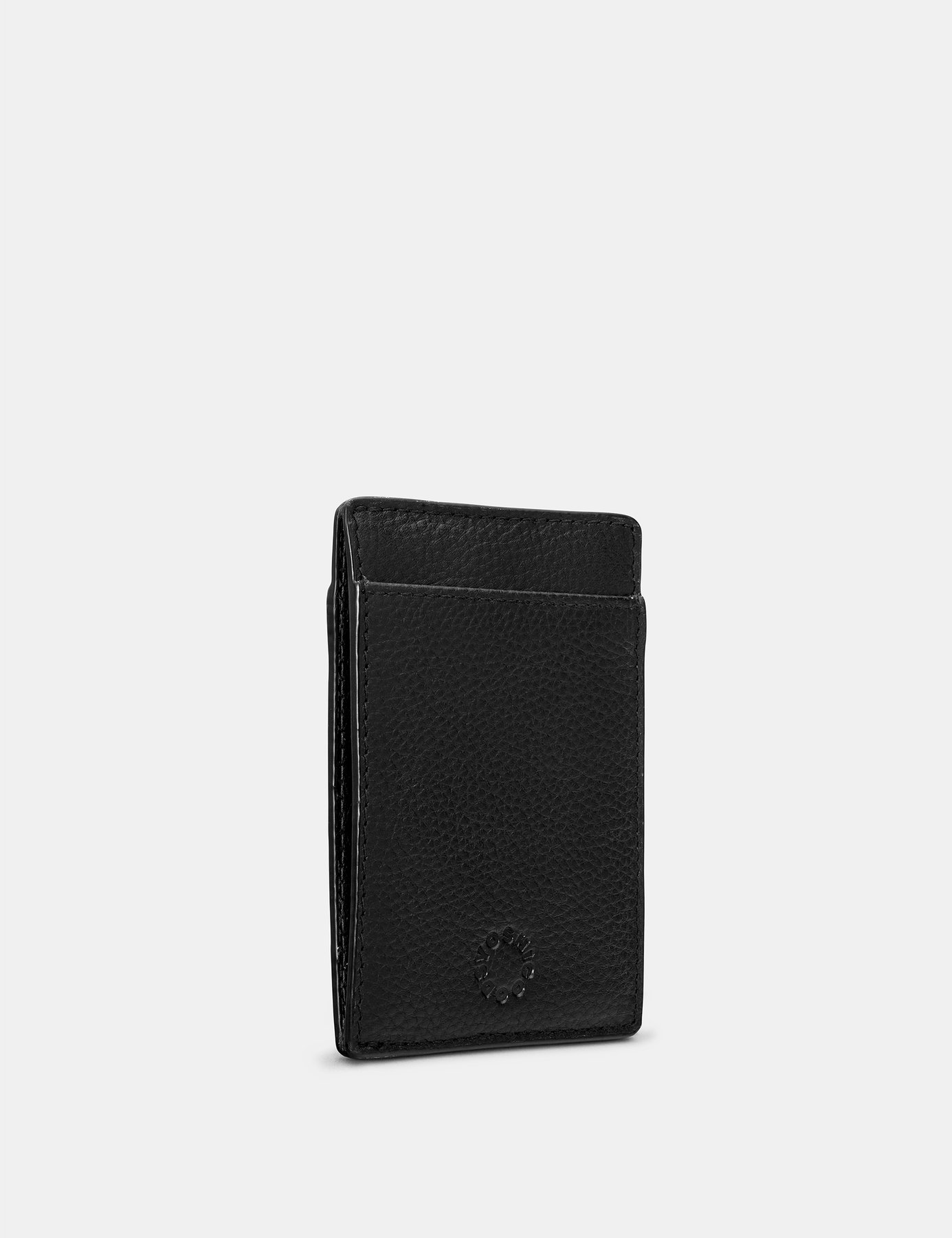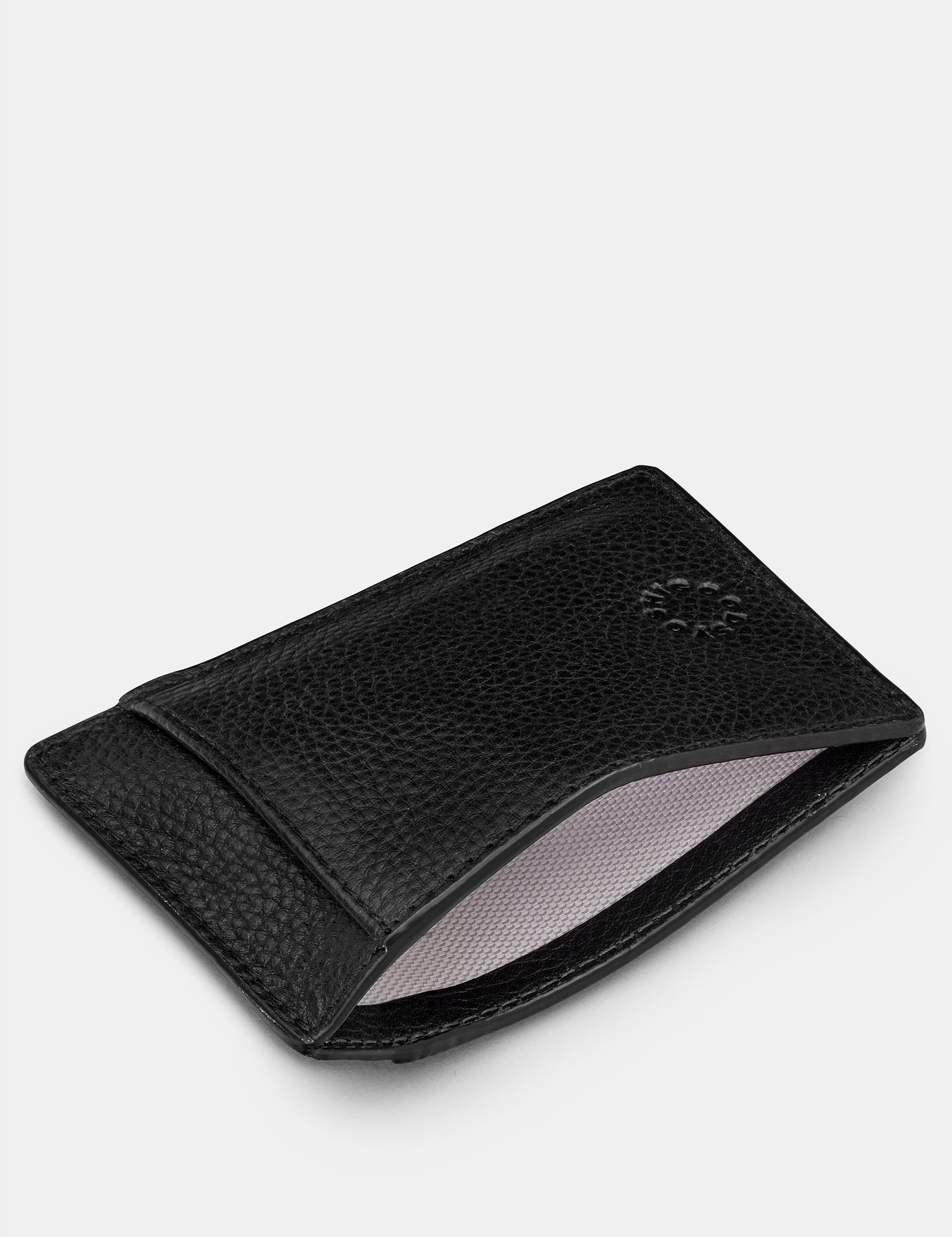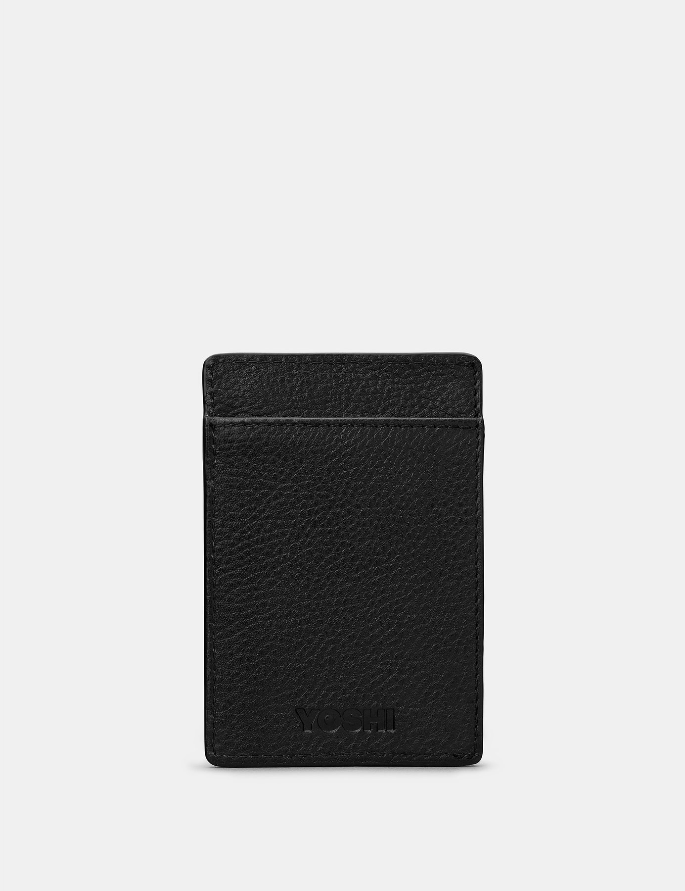 This space saving black leather card holder is a handcrafted style with RFID protection, and space for cards, and also folded notes in its front, back, and centre slip pockets. The perfect way to carry all of your essentials is a design that fits easily into any pocket.