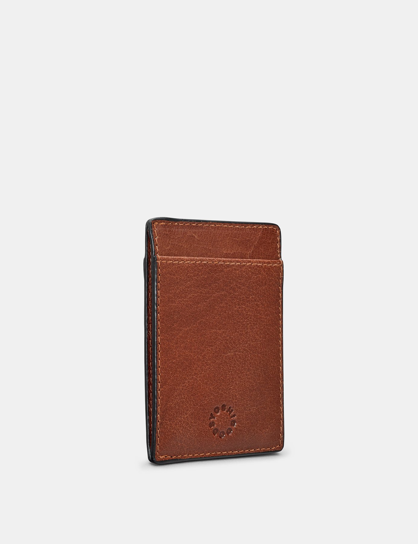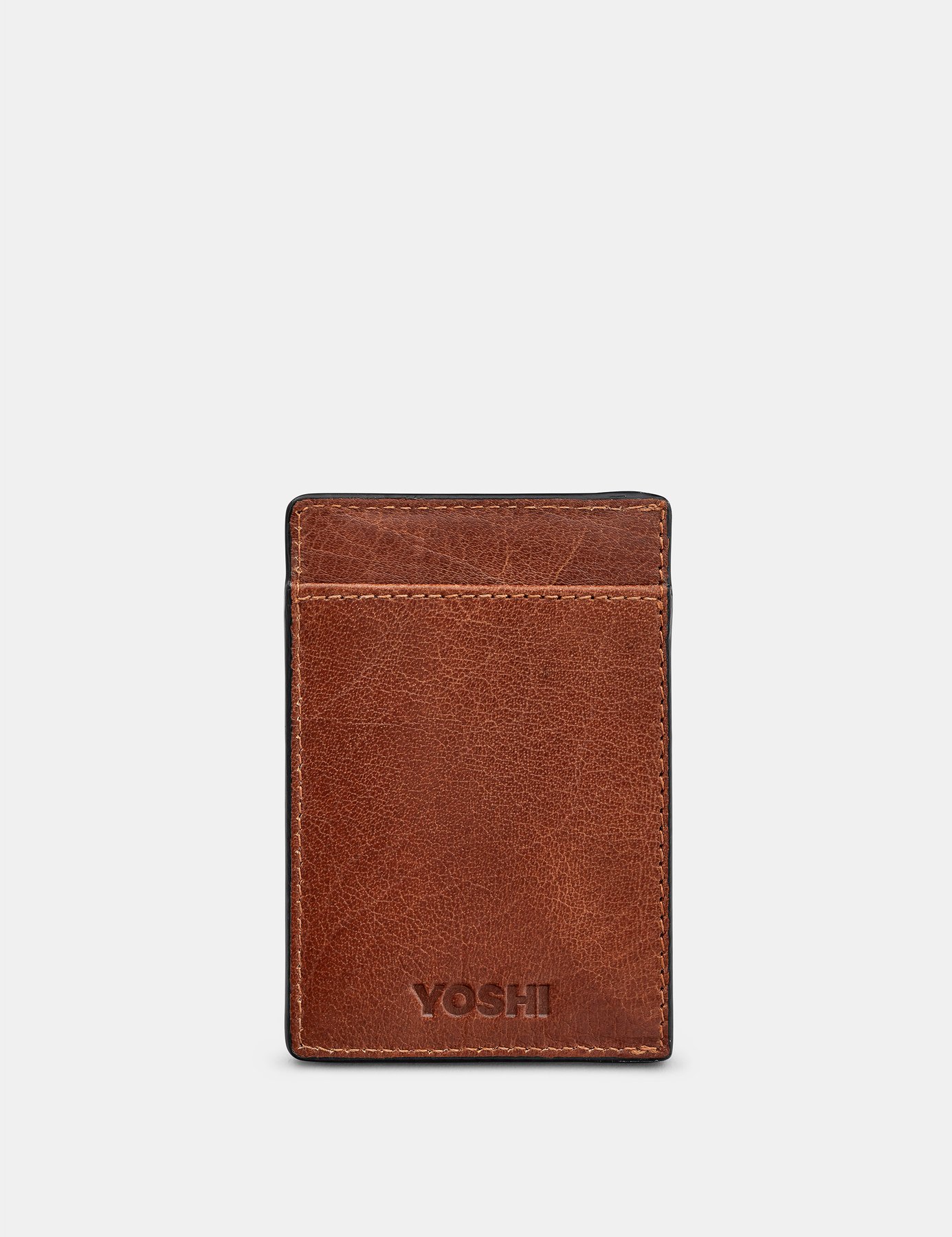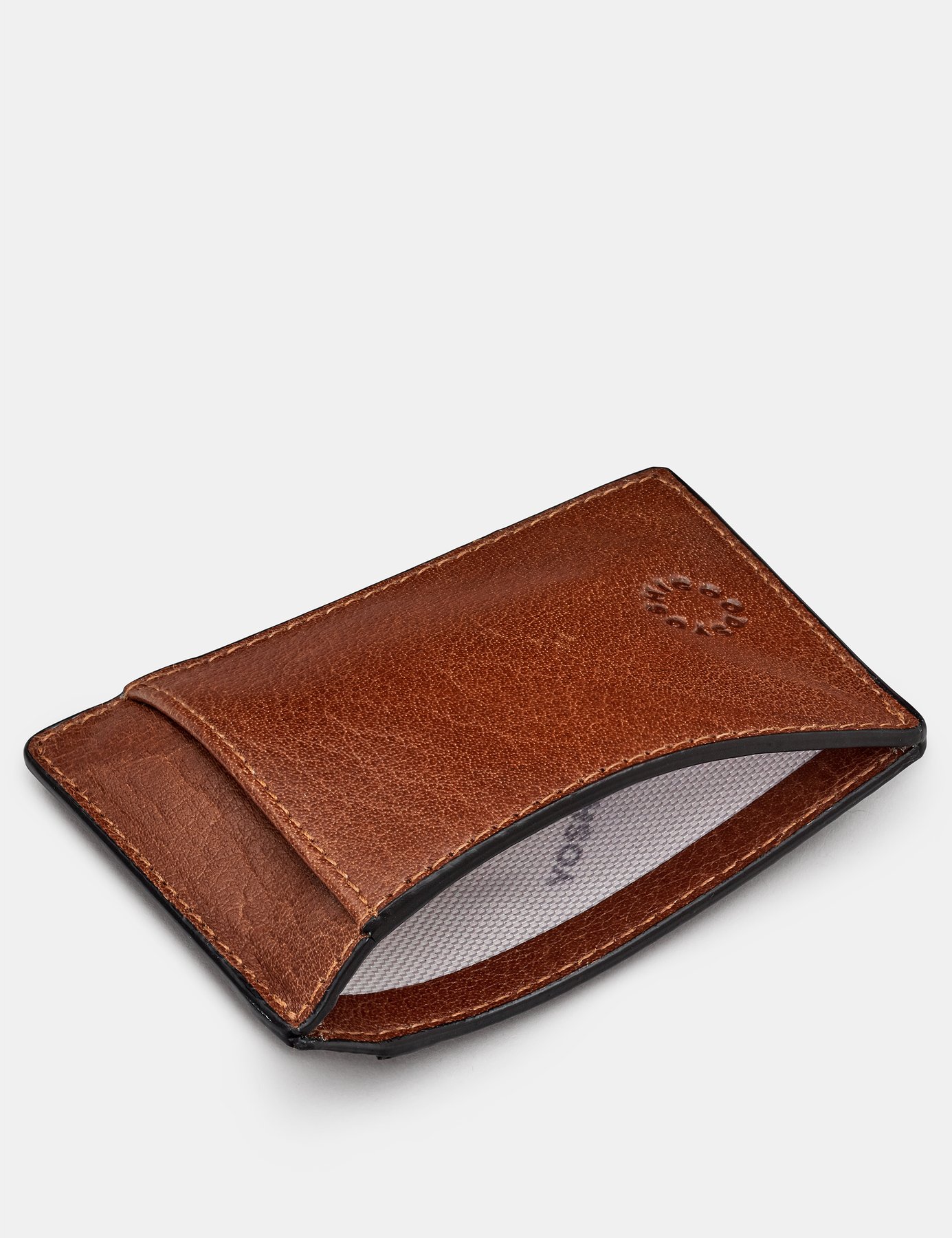 Our handcrafted brown leather compact card holder fits easily into any pocket and has RFID Protection. This slimline style has front and back slip pockets for your cards, and also a long centre slip pocket which fits folded notes, extra cards, and receipts etc.