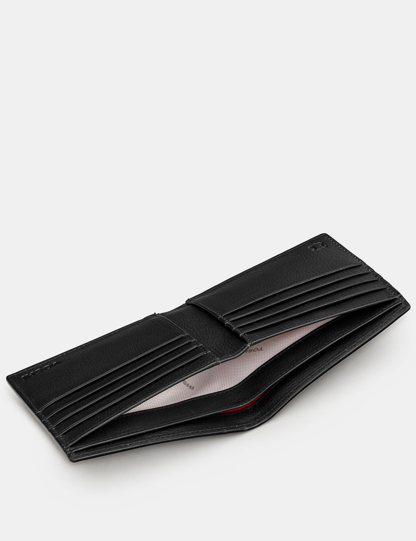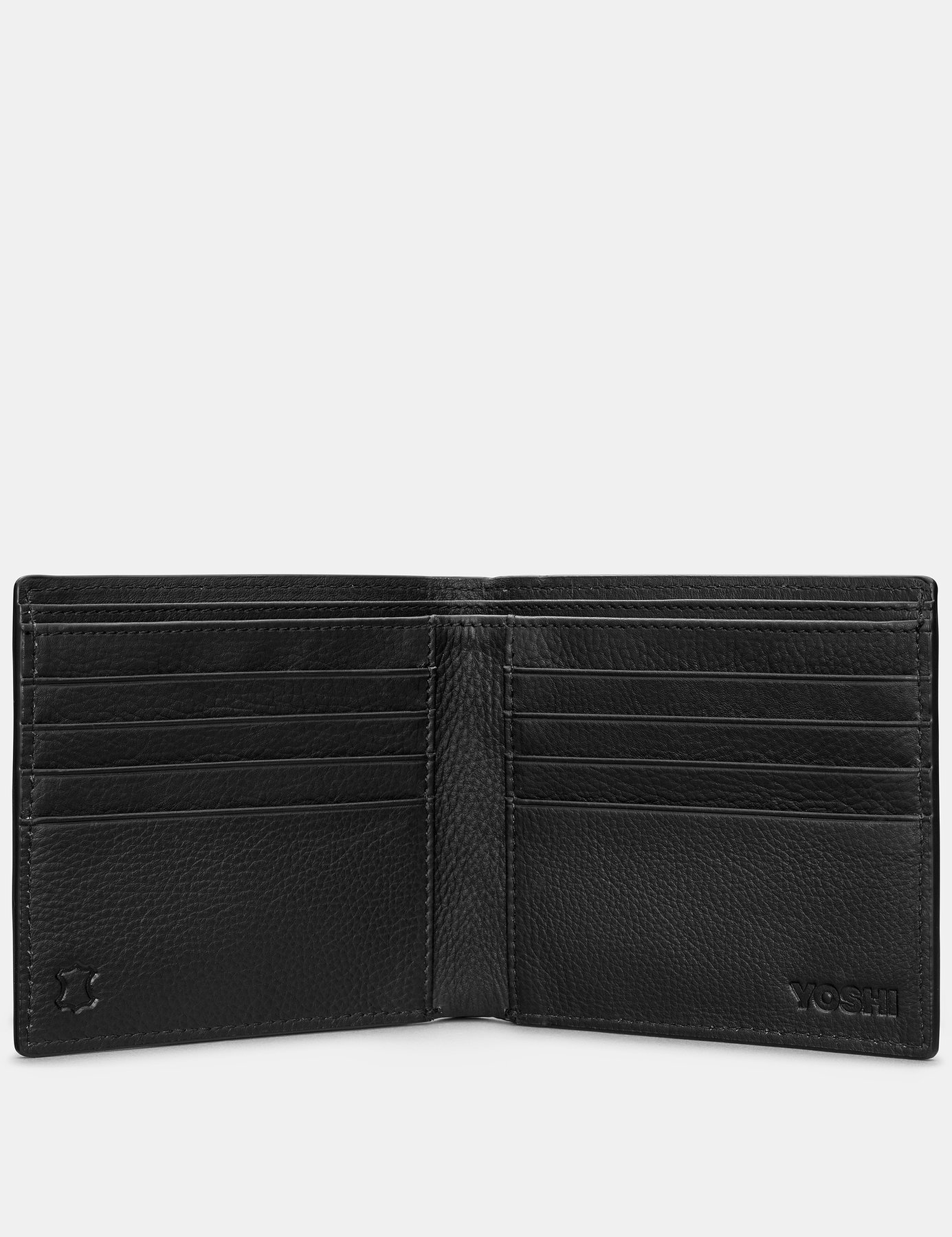 Our two fold black leather wallet for men is a slimline classic shape that fits nicely into any pocket. It has 8 credit card slots, double note section, 2 slip pockets, and RFID Protection.
